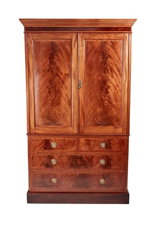 Quality Antique Mahogany Inlaid Linen Press c.1880