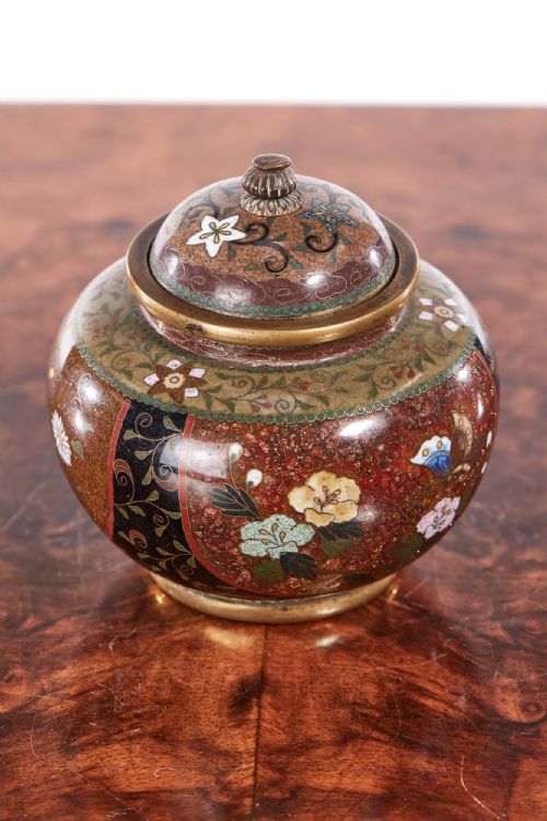 Quality Antique Miniature Japanese Cloisonne Vase and Cover