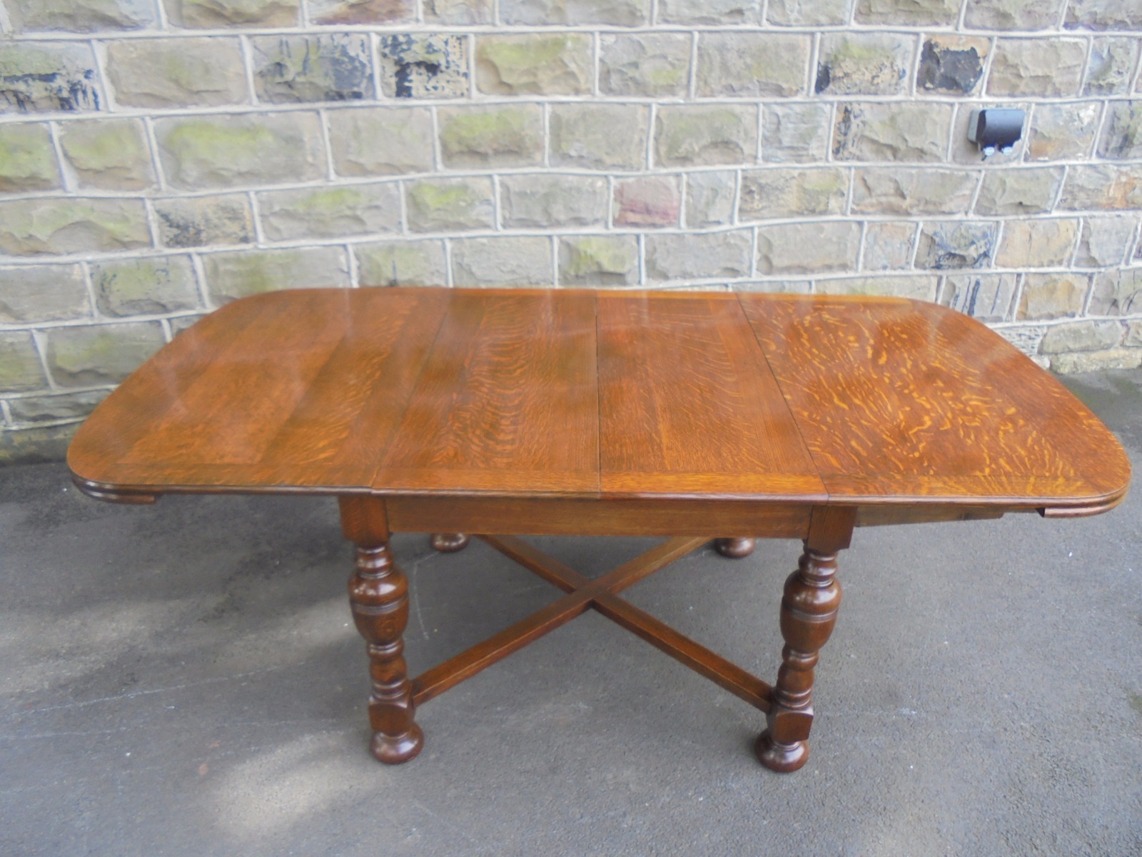 Quality Antique Oak 2 Leaf Extending Dining Table