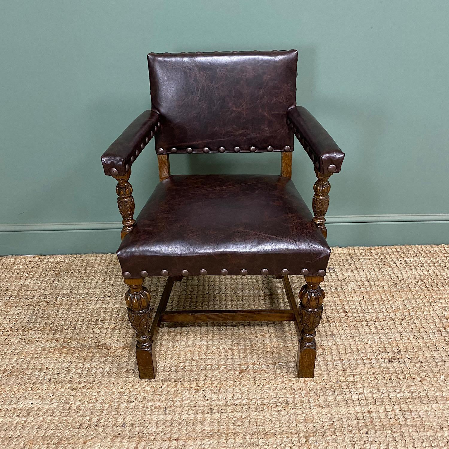 Quality Antique Oak & Leather Desk Chair / Armchair