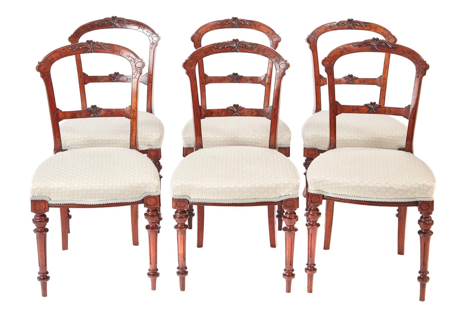 Quality Antique Set of 6 Victorian Walnut Dining Chairs