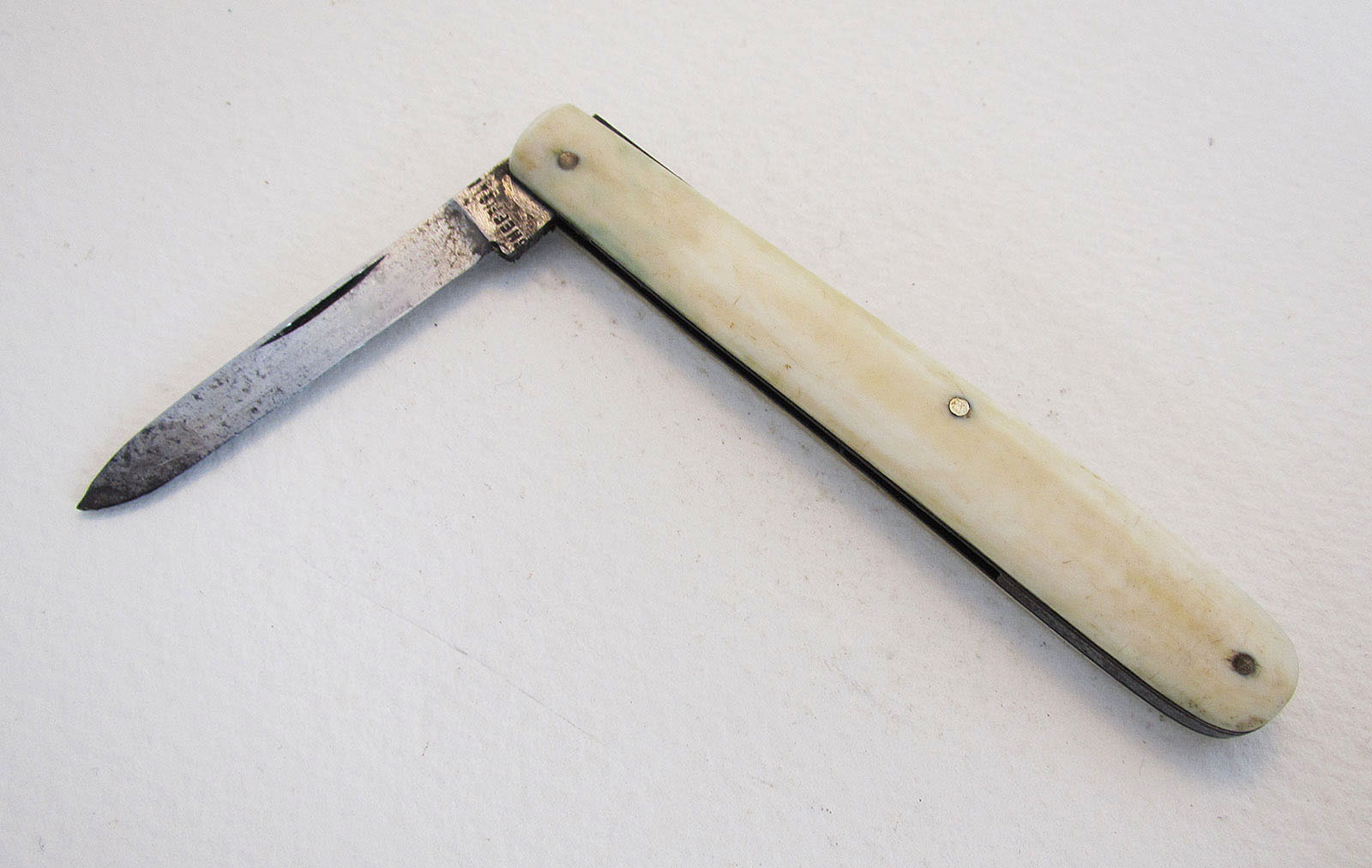 Quality Antique Victorian Carbon Steel Bone Handled Folding Pocket Penknife Fruit Knife Quill Pen Cutter, Sheffield c.1860