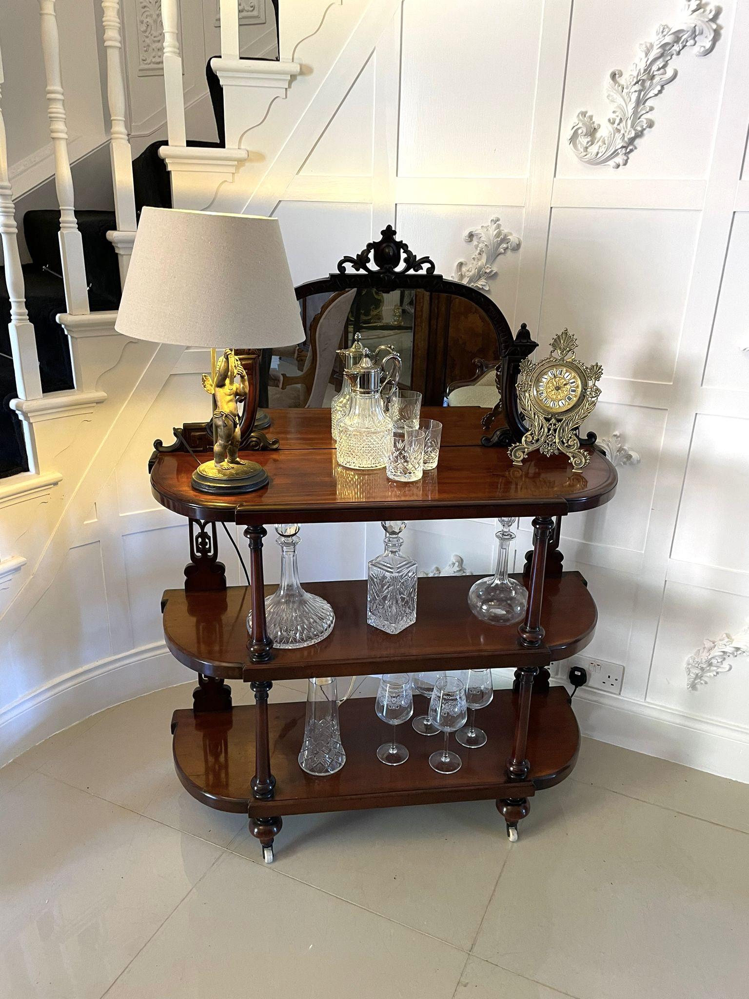 Quality Antique Victorian Mahogany Carved Mirror Back Whatnot