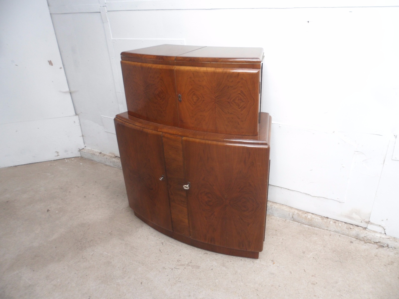 Quality Bow Fronted Burr Walnut / Birds Eye Maple Art Deco Bar / Cabinet 1930s