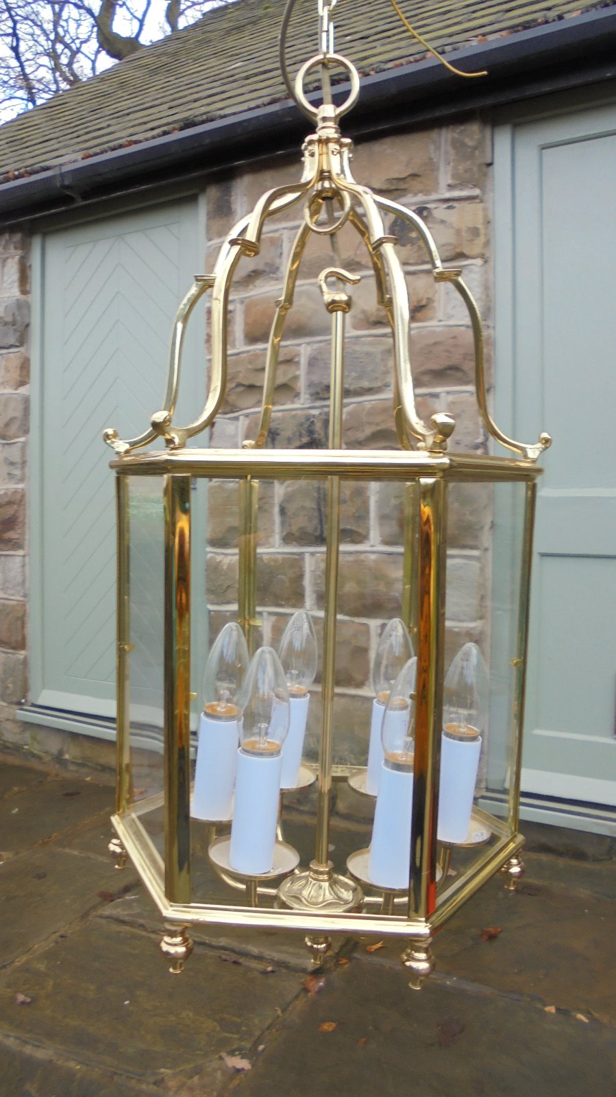 Quality Brass 6 Sided Glass Panel Hanging Lantern