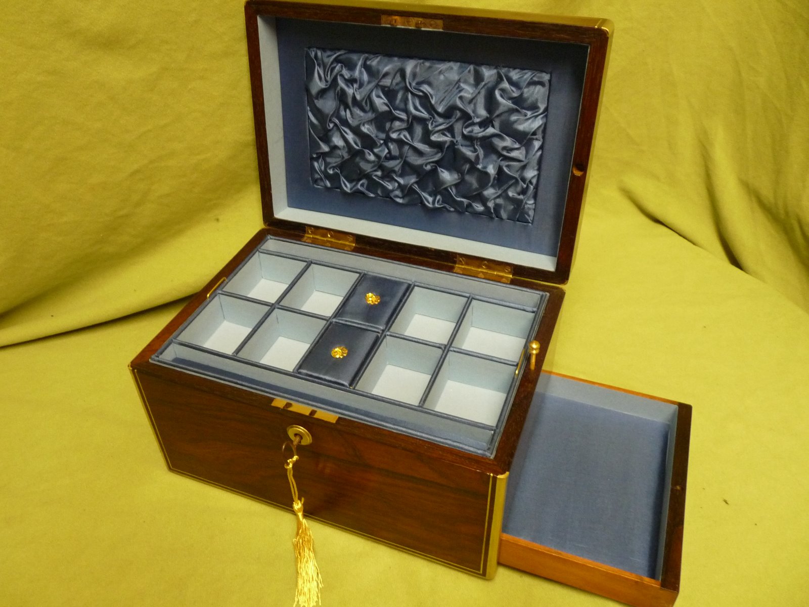 Quality Brass Bound Jewellery Box. Drawer + Tray c.1850