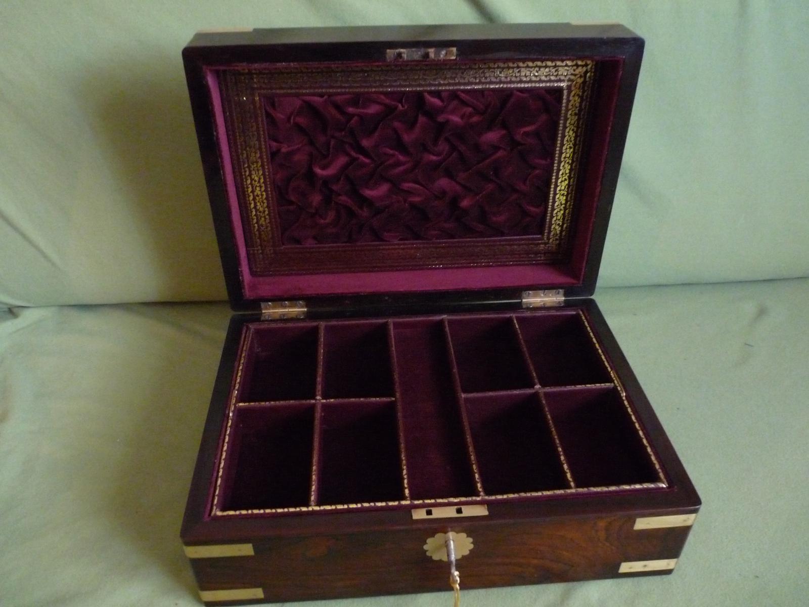 Quality Brass Bound Rosewood Unisex Jewellery Box + Tray c.1850
