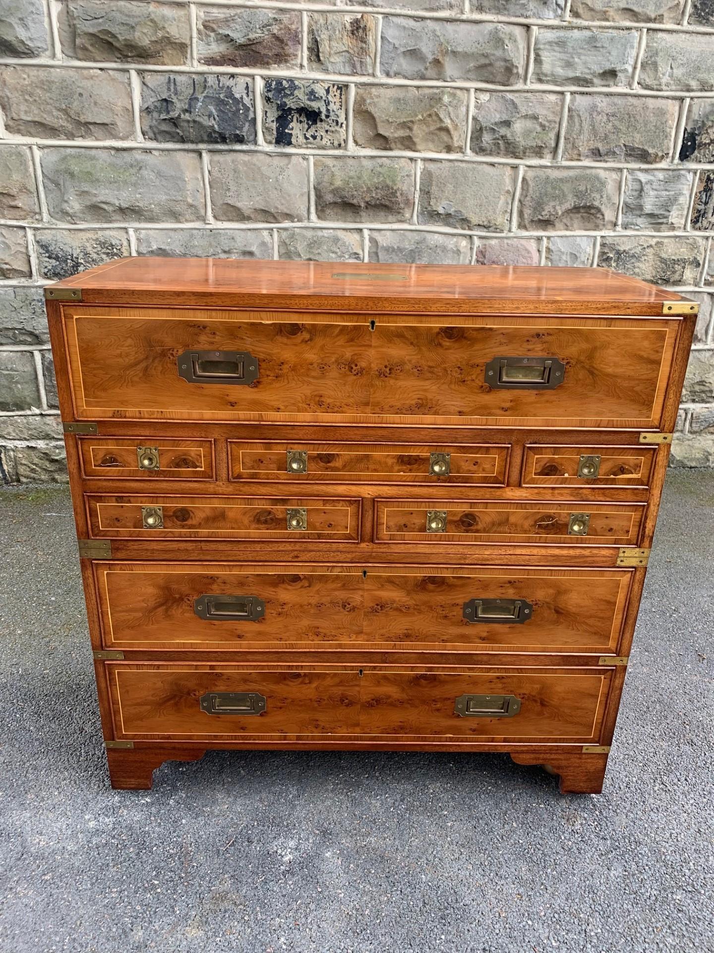 Quality Brass Bound Yew Military Campaign Chest of Drawers