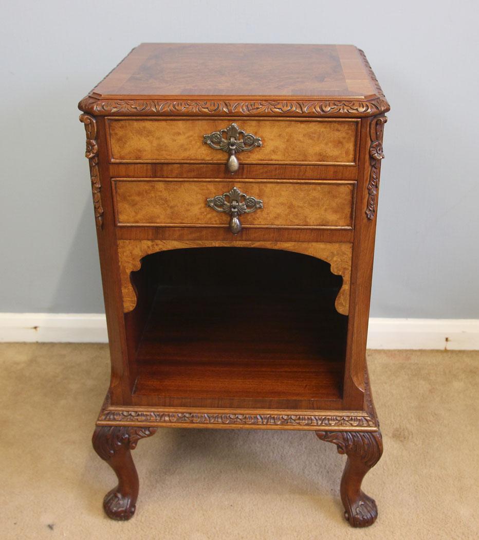 Quality Burr Walnut Antique Bedside Cabinet