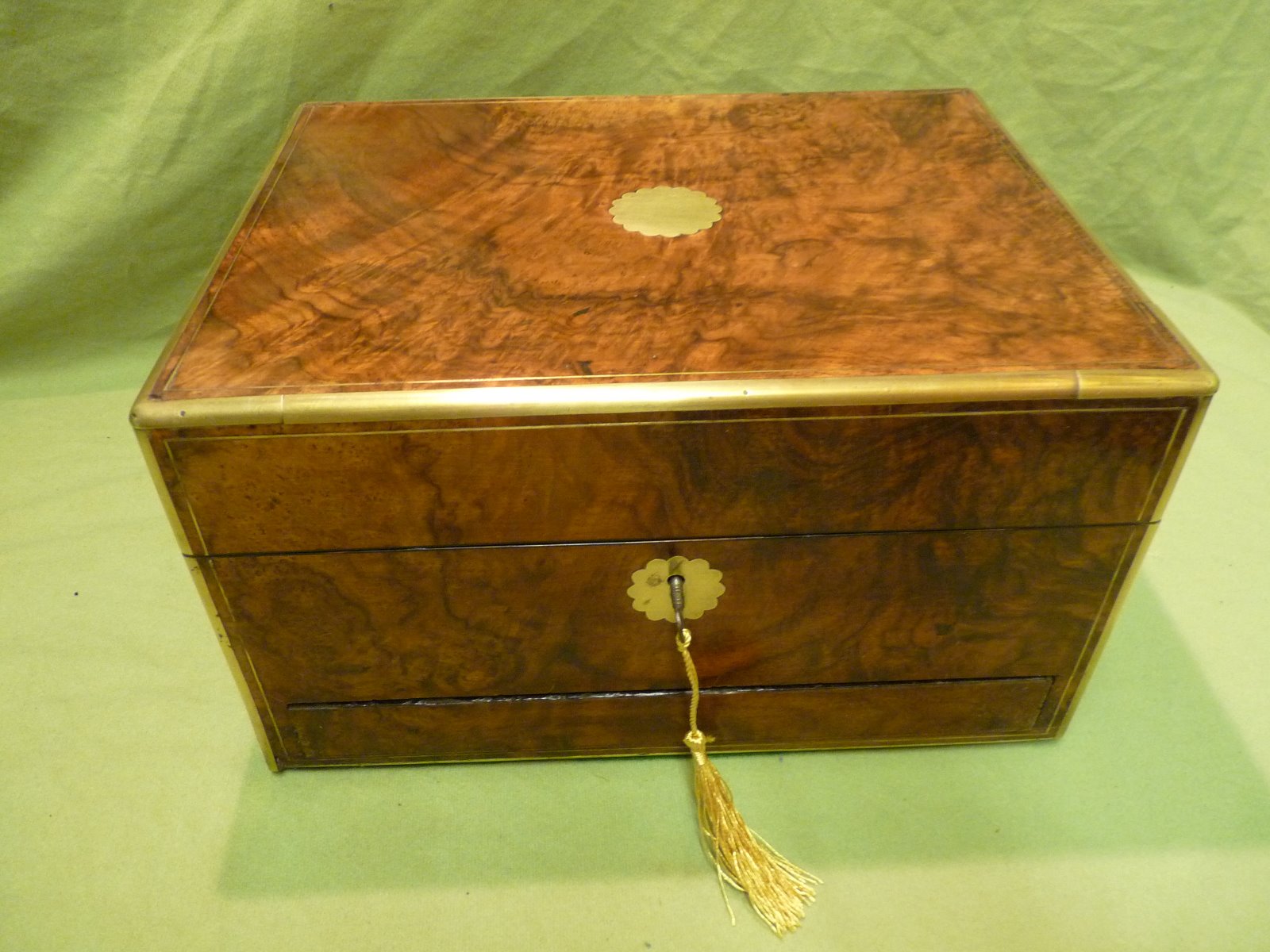 Quality Burr Walnut Brass Bound Jewellery Box c.1865