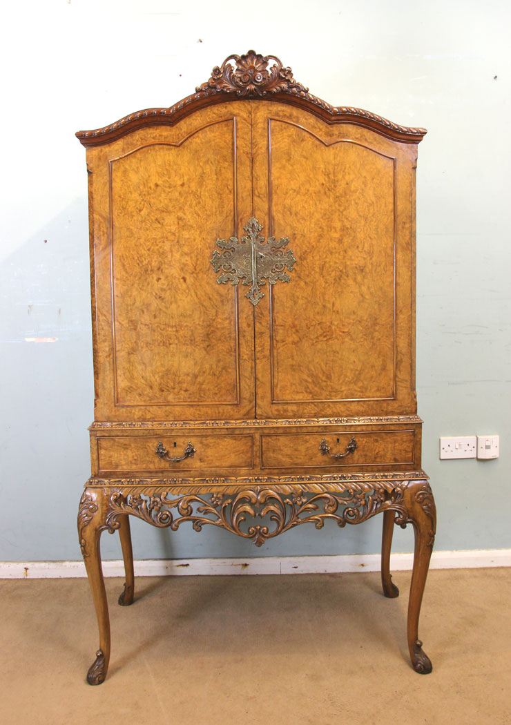 Quality Burr Walnut Cocktail Drinks Cabinet
