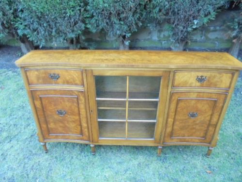Quality Burr Walnut Dwarf Side Cabinet Bookcase c.1920