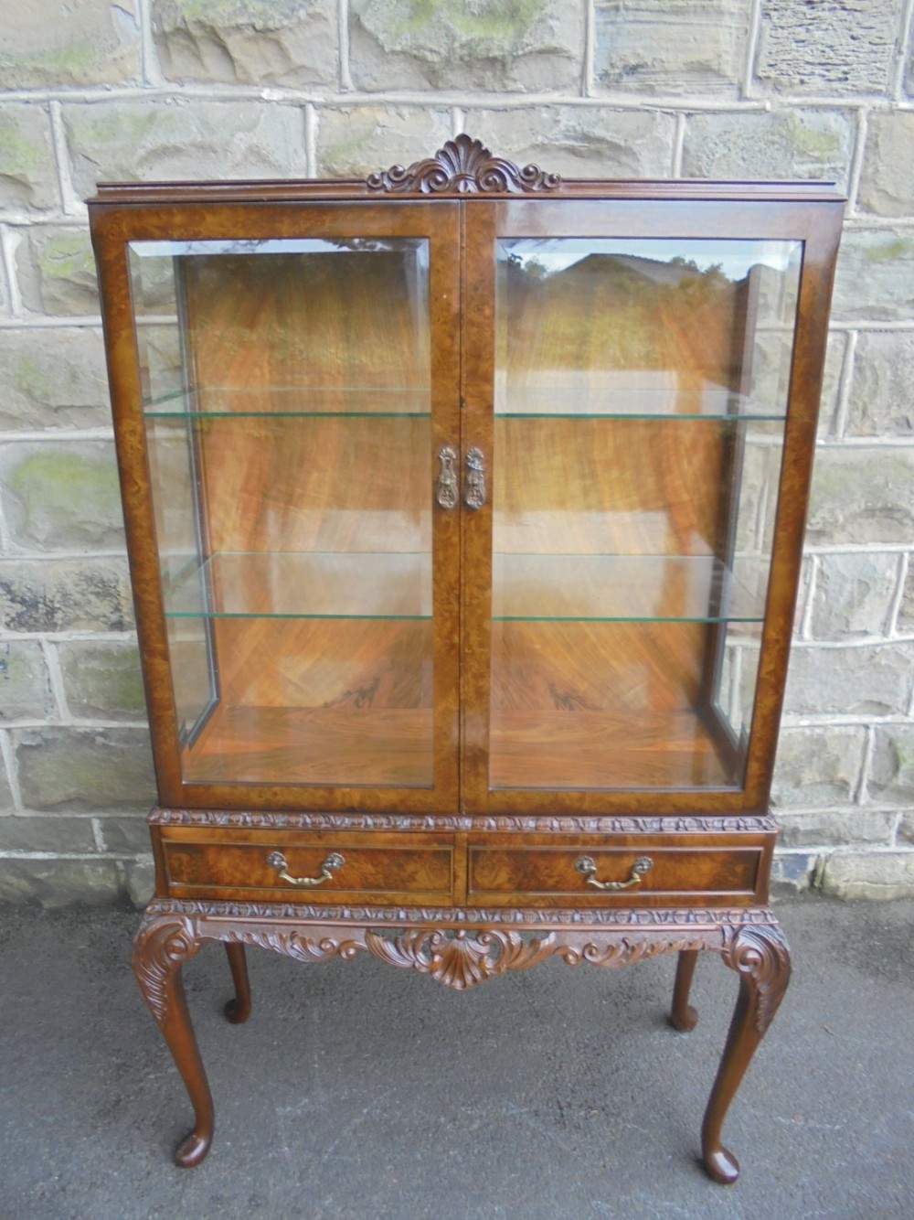 Quality Burr Walnut Glazed Display Cabinet c.1920