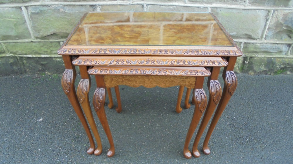 Quality Burr Walnut Nest of 3 Tables c.1920