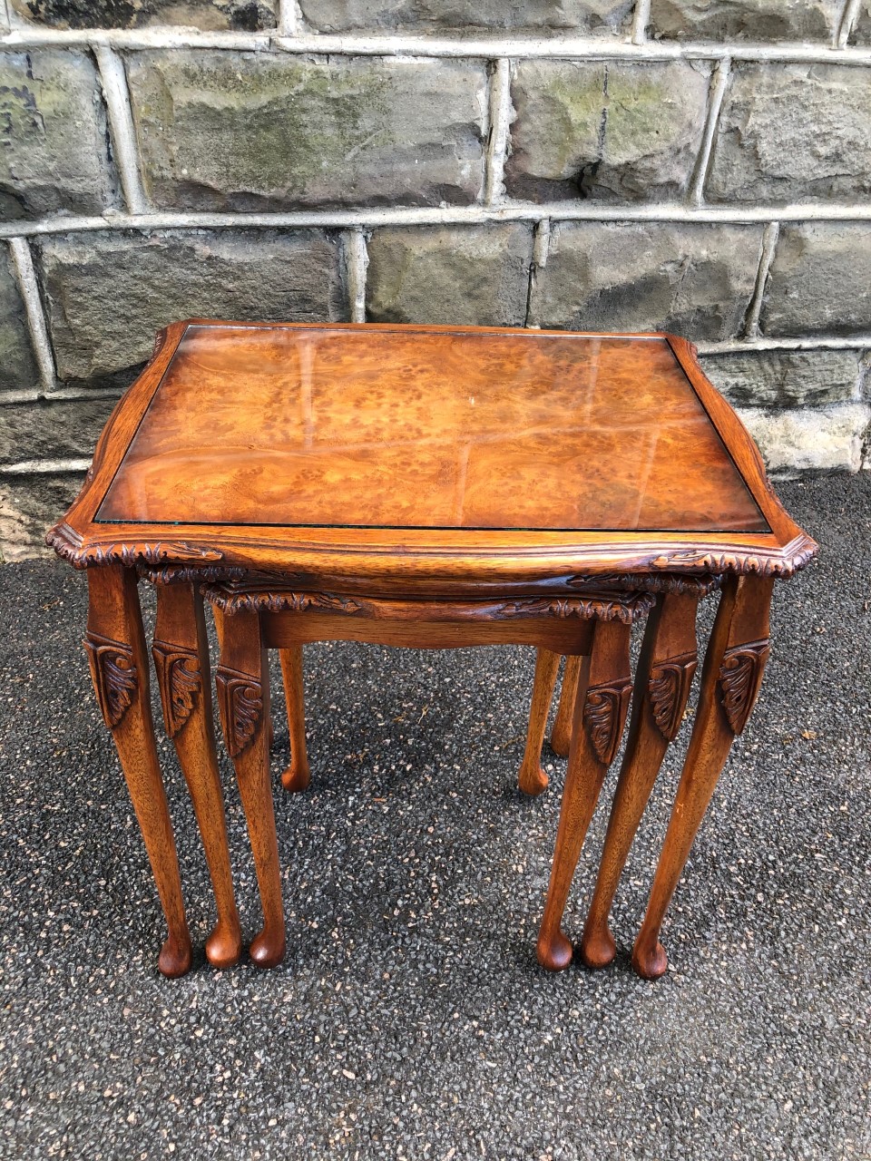 Quality Burr Walnut Nest of 3 Tables c.1920