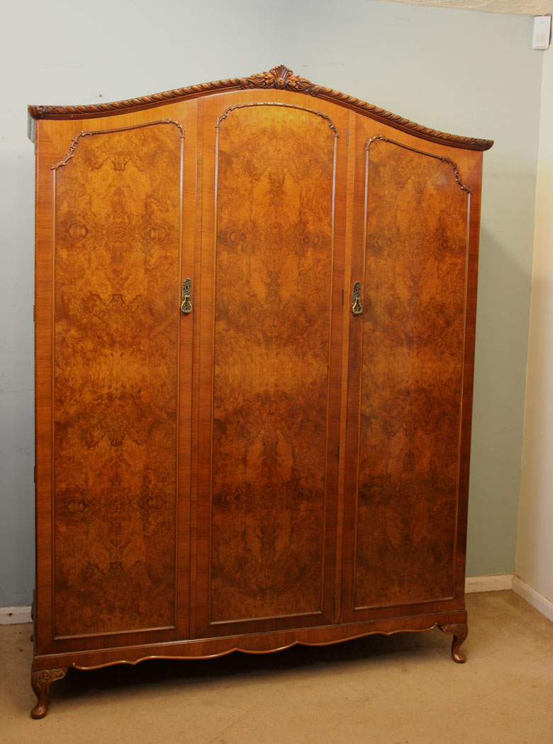 Quality Burr Walnut Triple Wardrobe C.1920 (1 of 1)