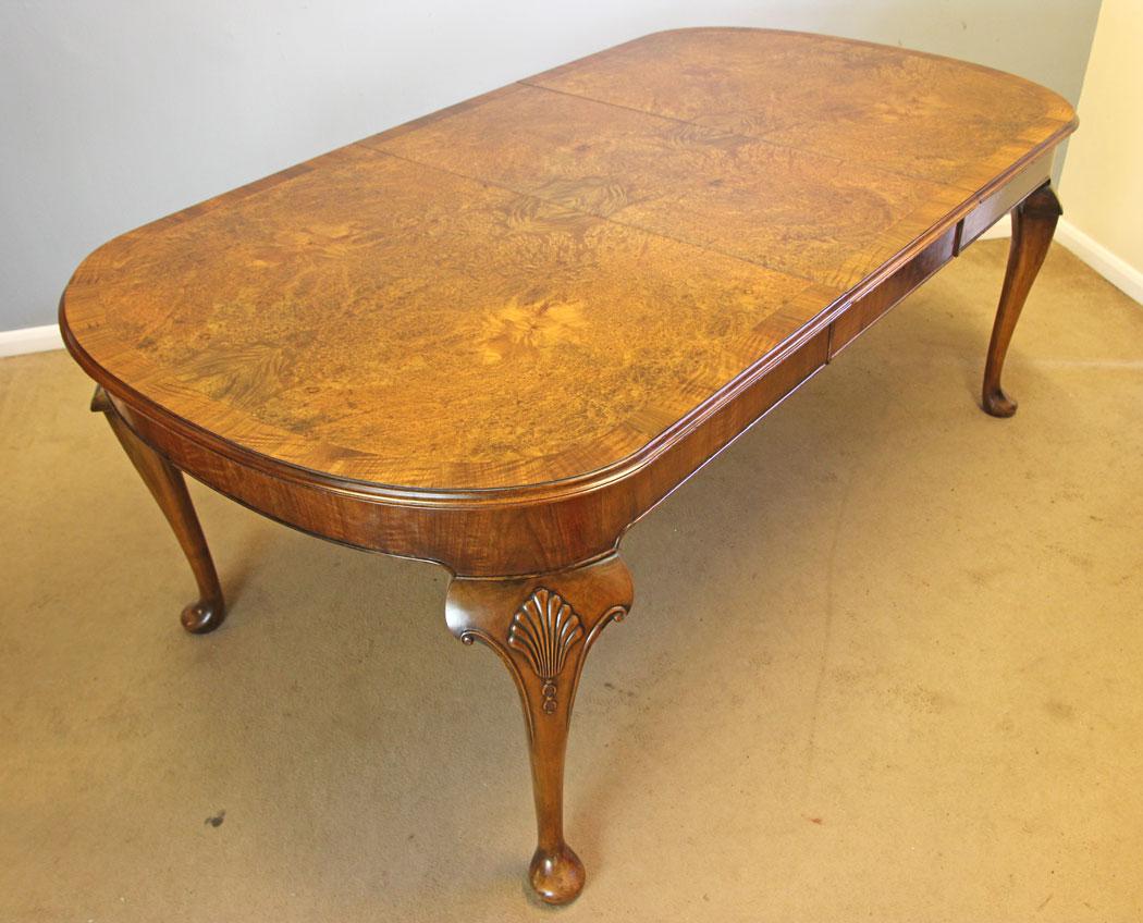 Quality Burr Walnut Two Leaf Antique Extending Dining Table