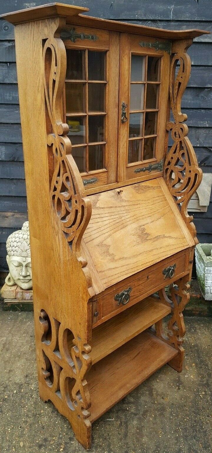 Quality Carved Oak Arts & Crafts Bureau Bookcase
