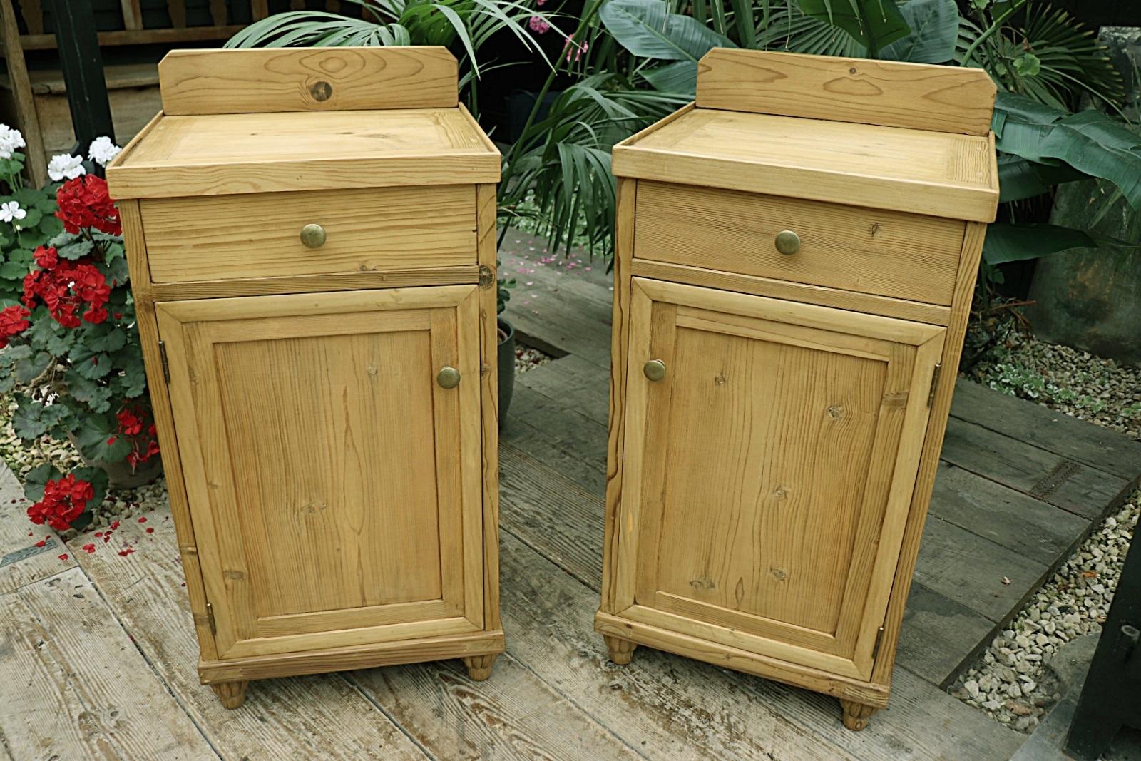 Quality & Chunky Old Mid 20th Century Pine Bedside Cabinets / Cupboards / Lamp Tables