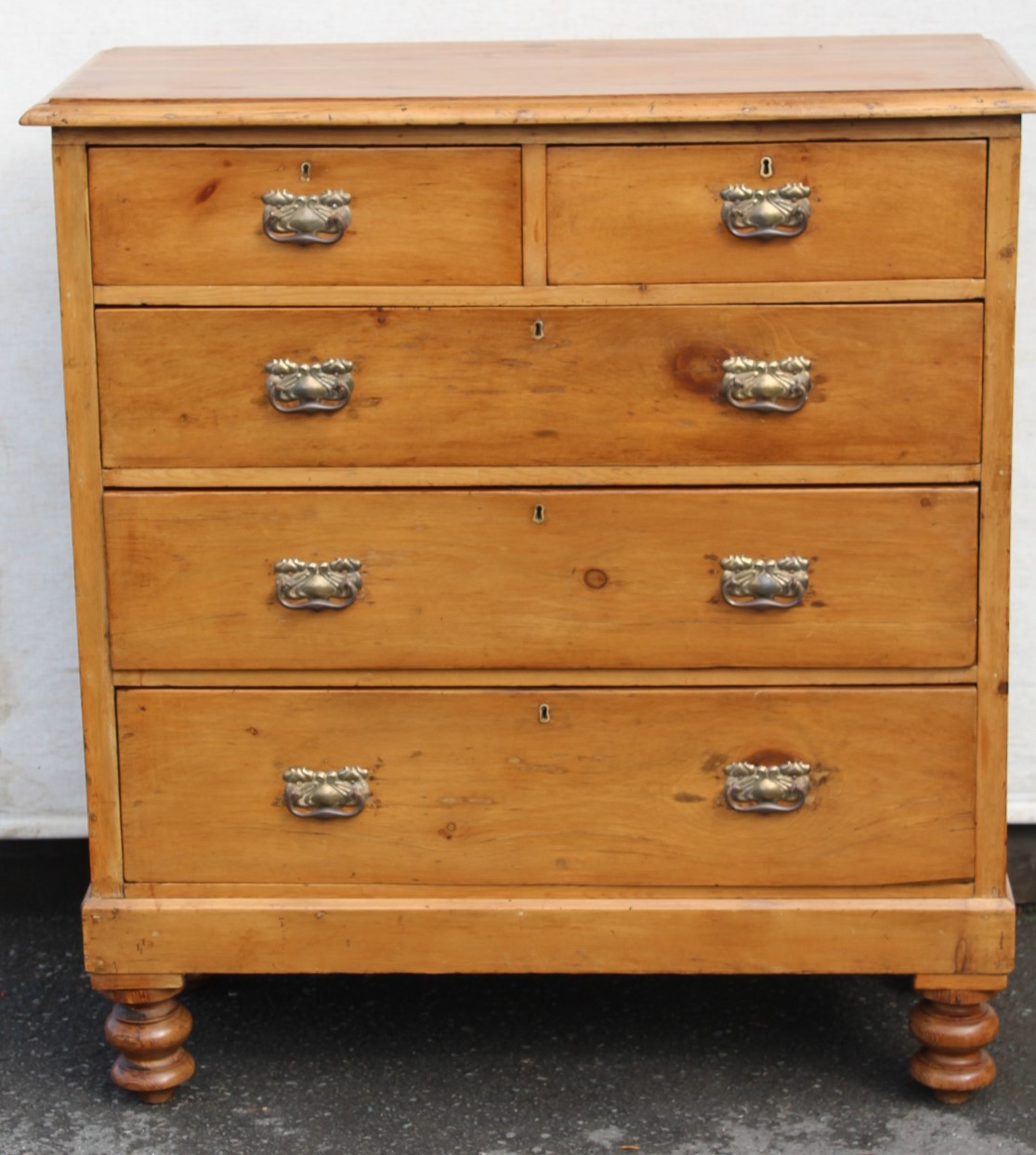 Quality Country Pine Chest of Drawers with Metal Handles c.1910