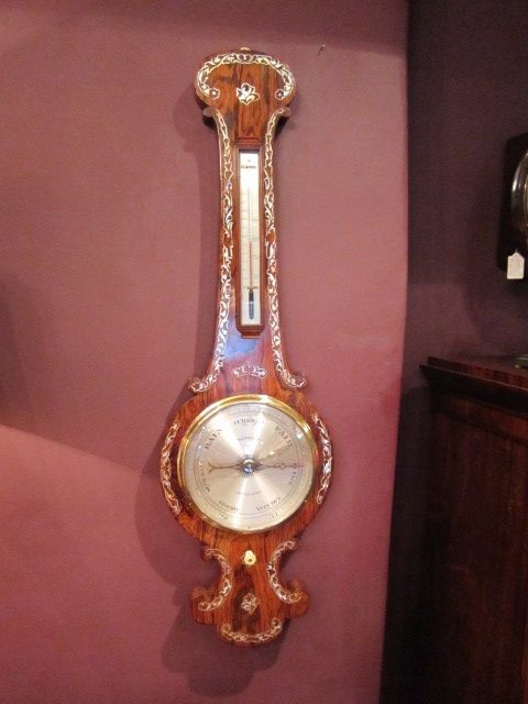 Quality Early Victorian Rosewood Inlaid Banjo Barometer