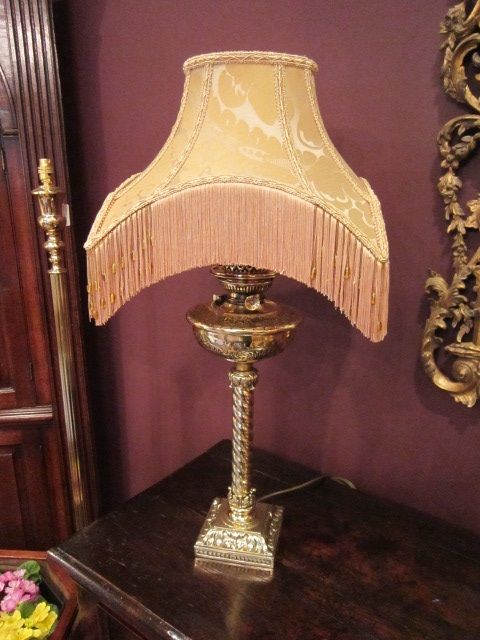 Quality Edwardian Brass Table Lamp & Shade