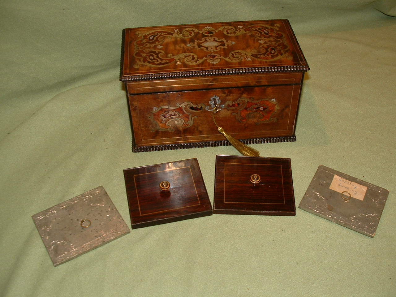 Quality French Boulle Tea Caddy. Original Four Interior Lids c.1845