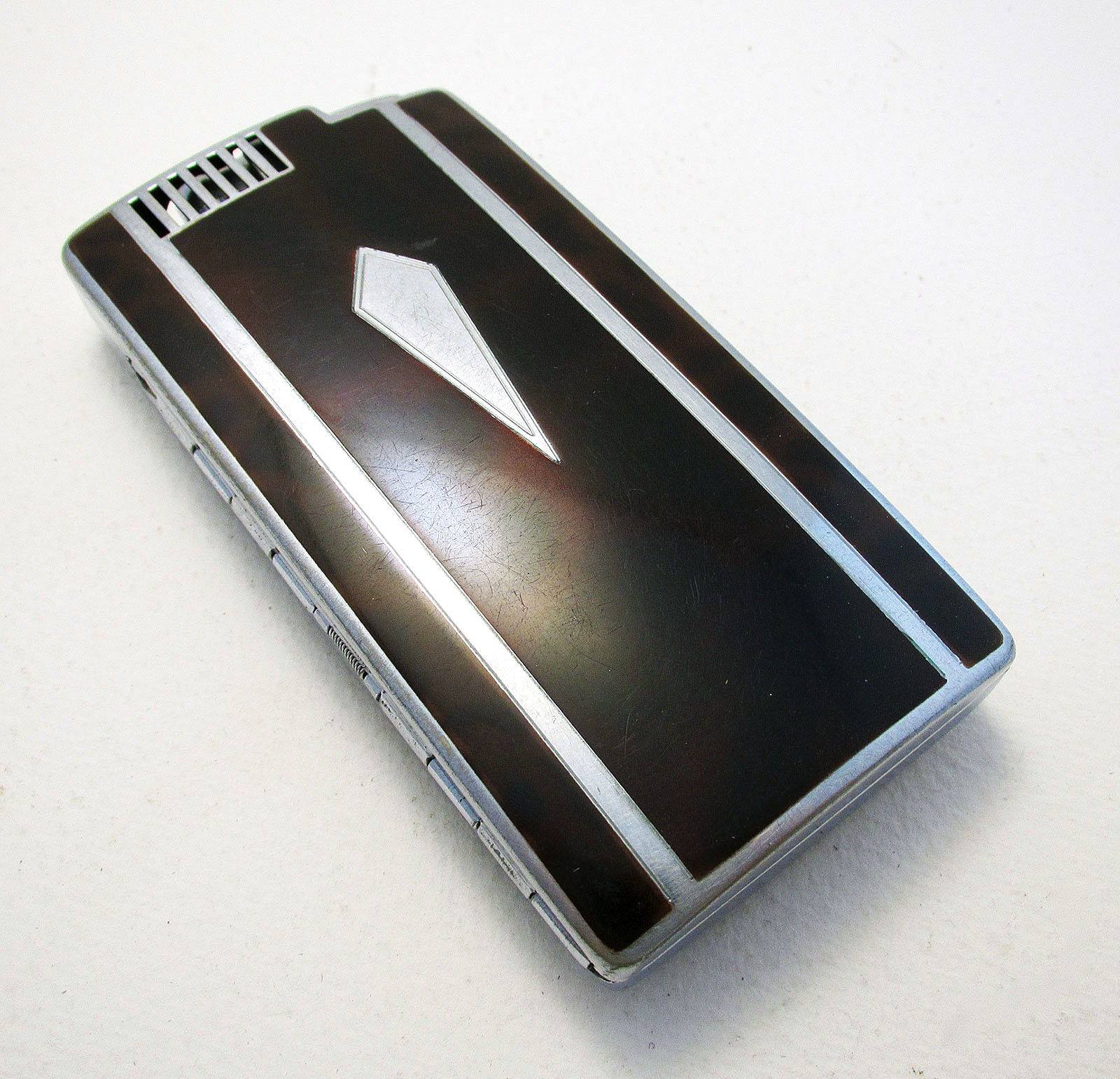 Quality Genuine Ronson 'Pal' Chrome & Faux Tortoiseshell Enamel Cigarette Lighter Combination Case. Art Deco