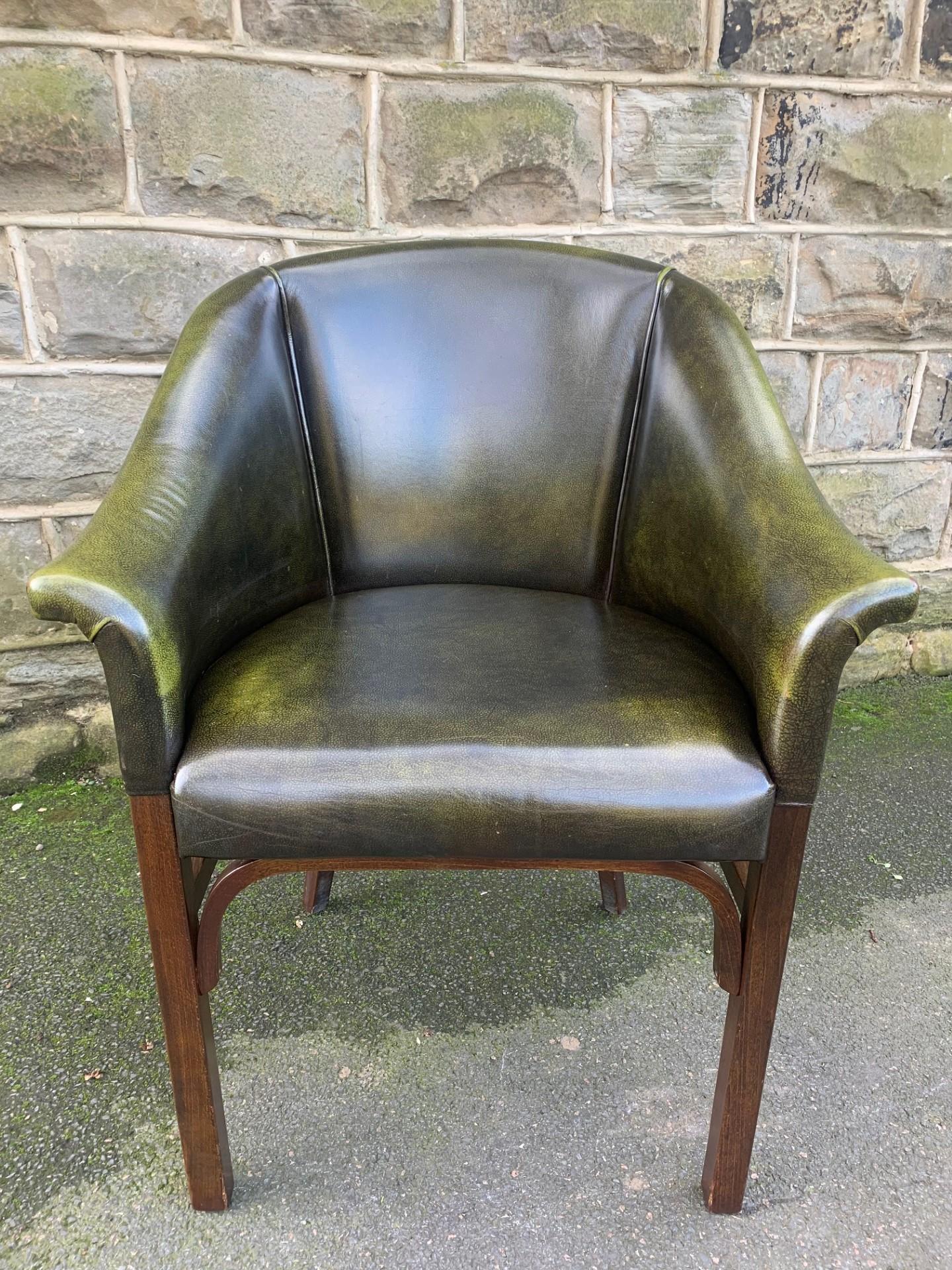 Quality Green Leather Tub Armchairs