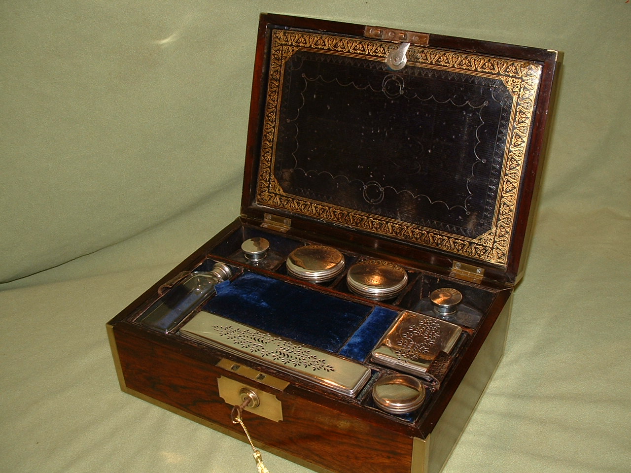 Quality Halstaff Fully Bound Rosewood Dressing Box c 1840