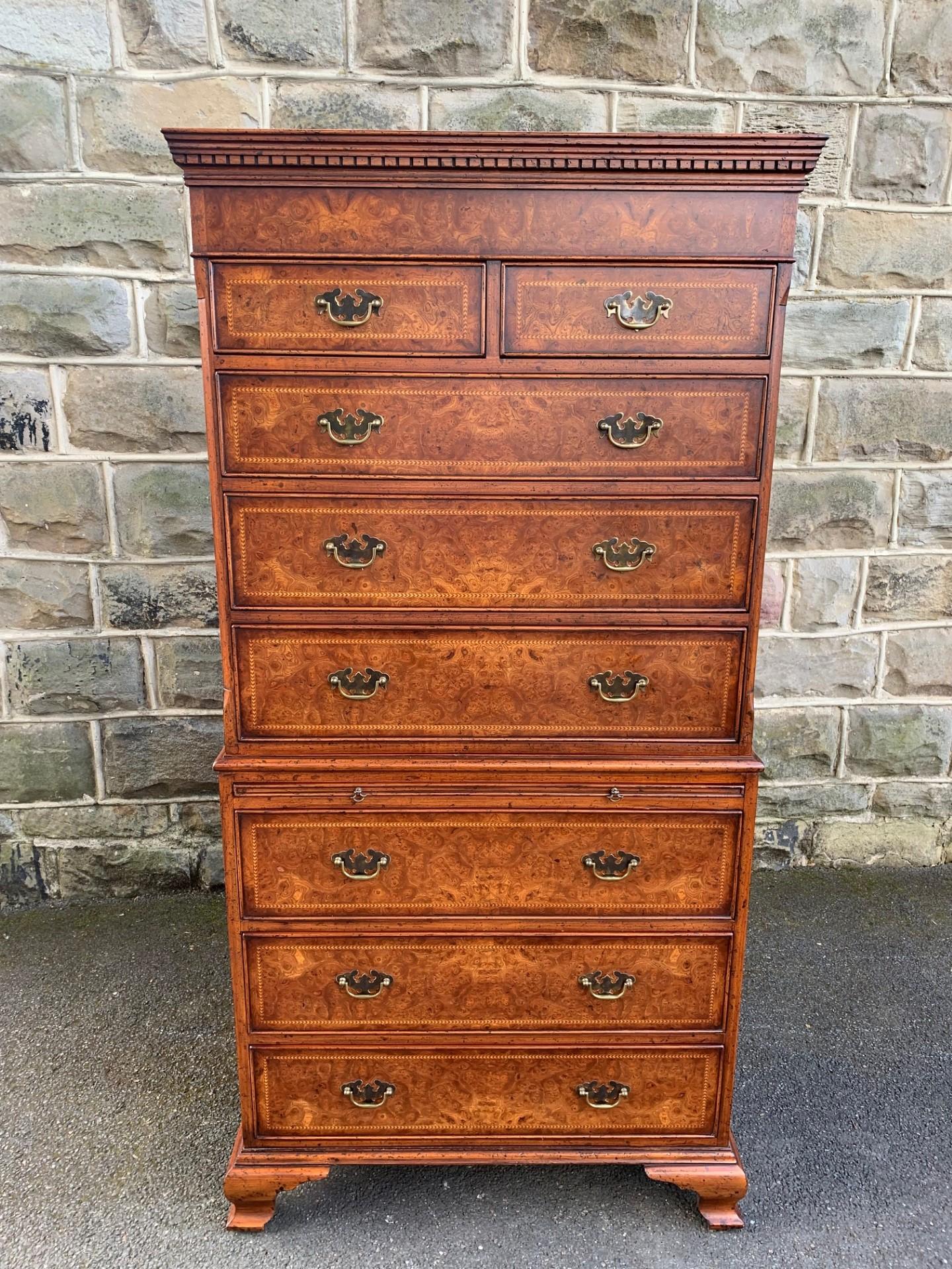 Quality Inlaid Burr Walnut Chest on Chest Tallboy