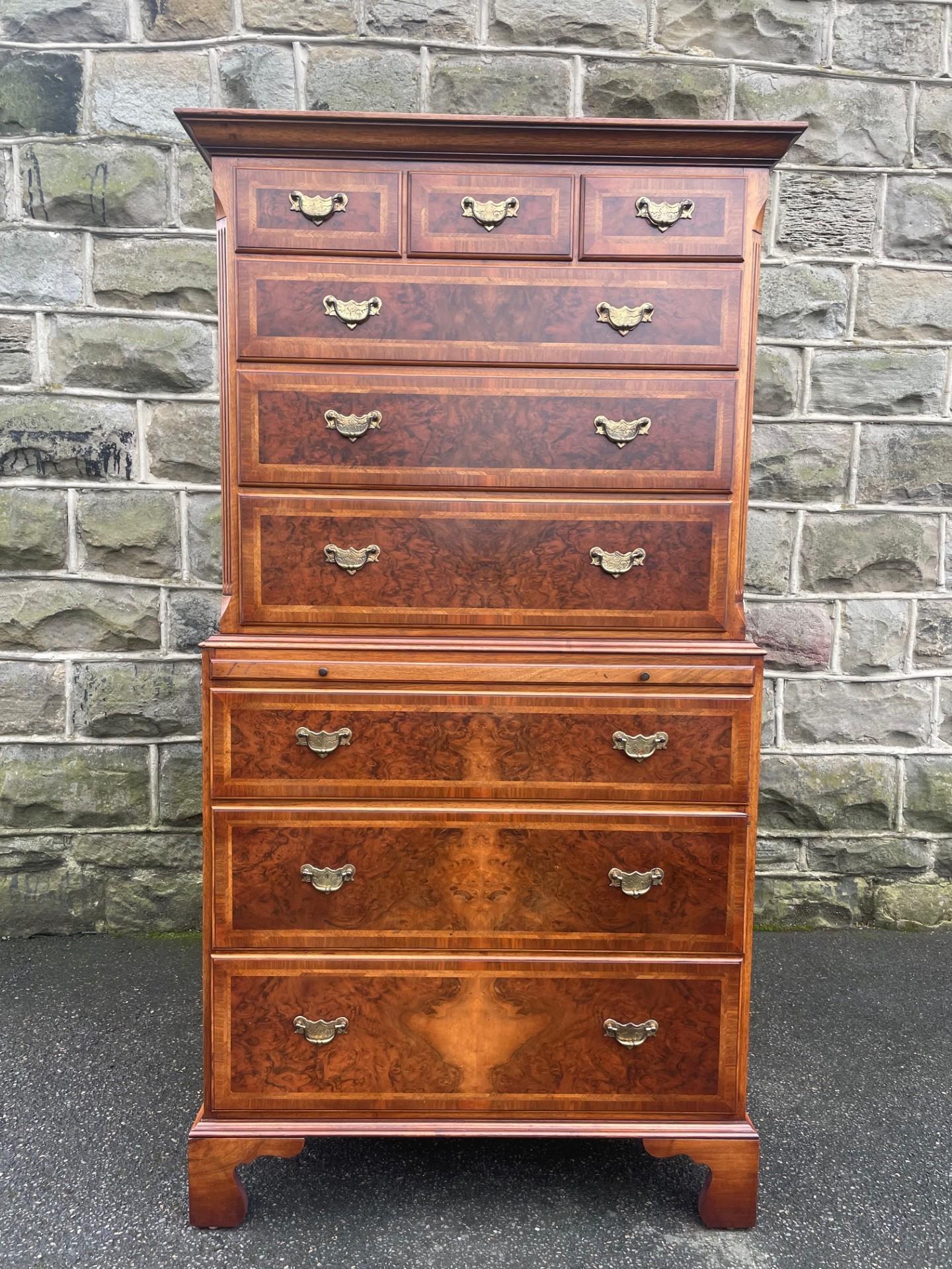 Offered for sale is this superb quality inlaid burr walnut chest on chest / tallboy.