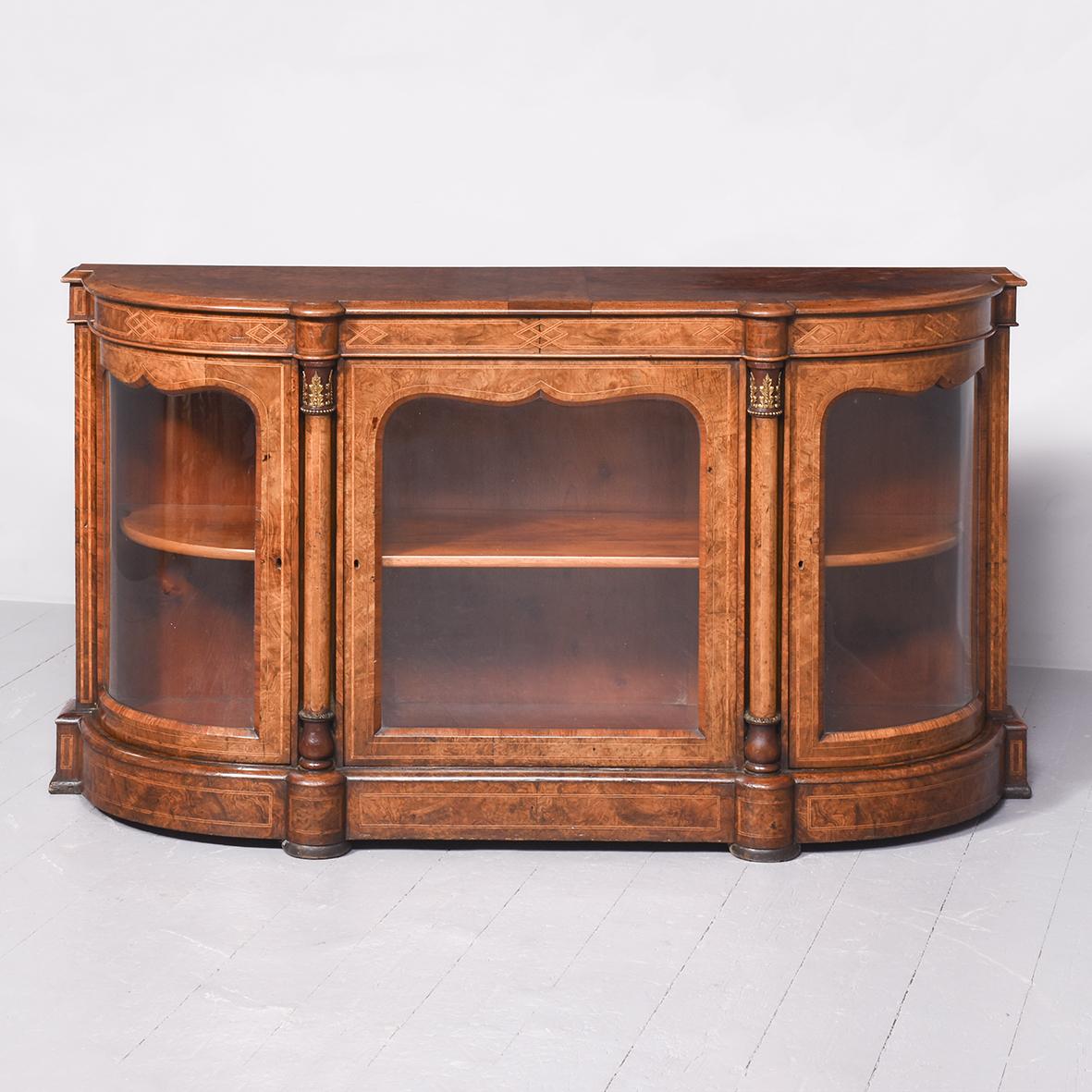 Quality Inlaid Burr Walnut Victorian Bow-end Credenza