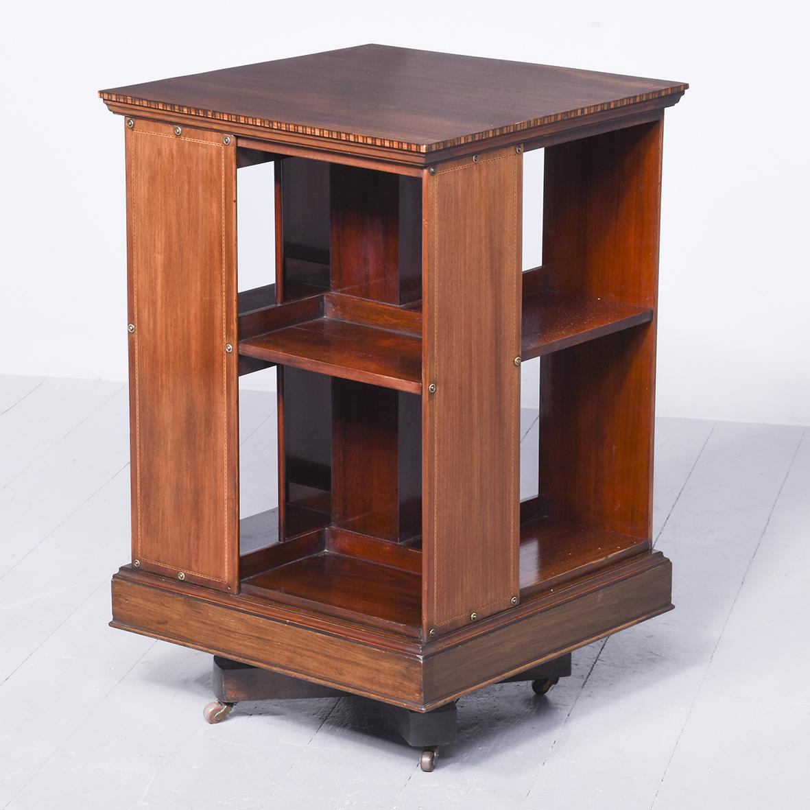 Quality Inlaid Mahogany Edwardian Revolving Bookcase of Unusual Design