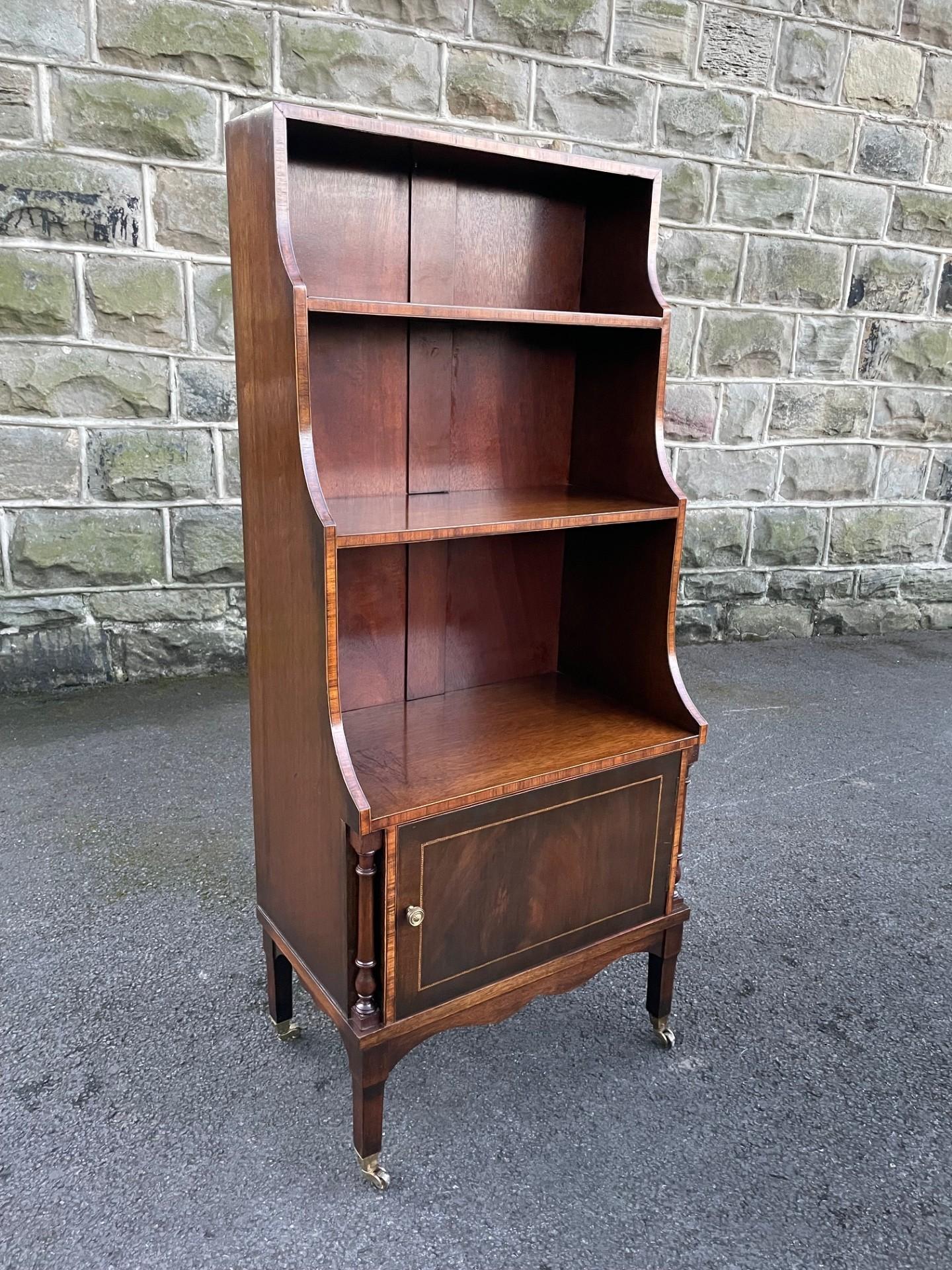 Quality Inlaid Mahogany Waterfall Open Bookcase