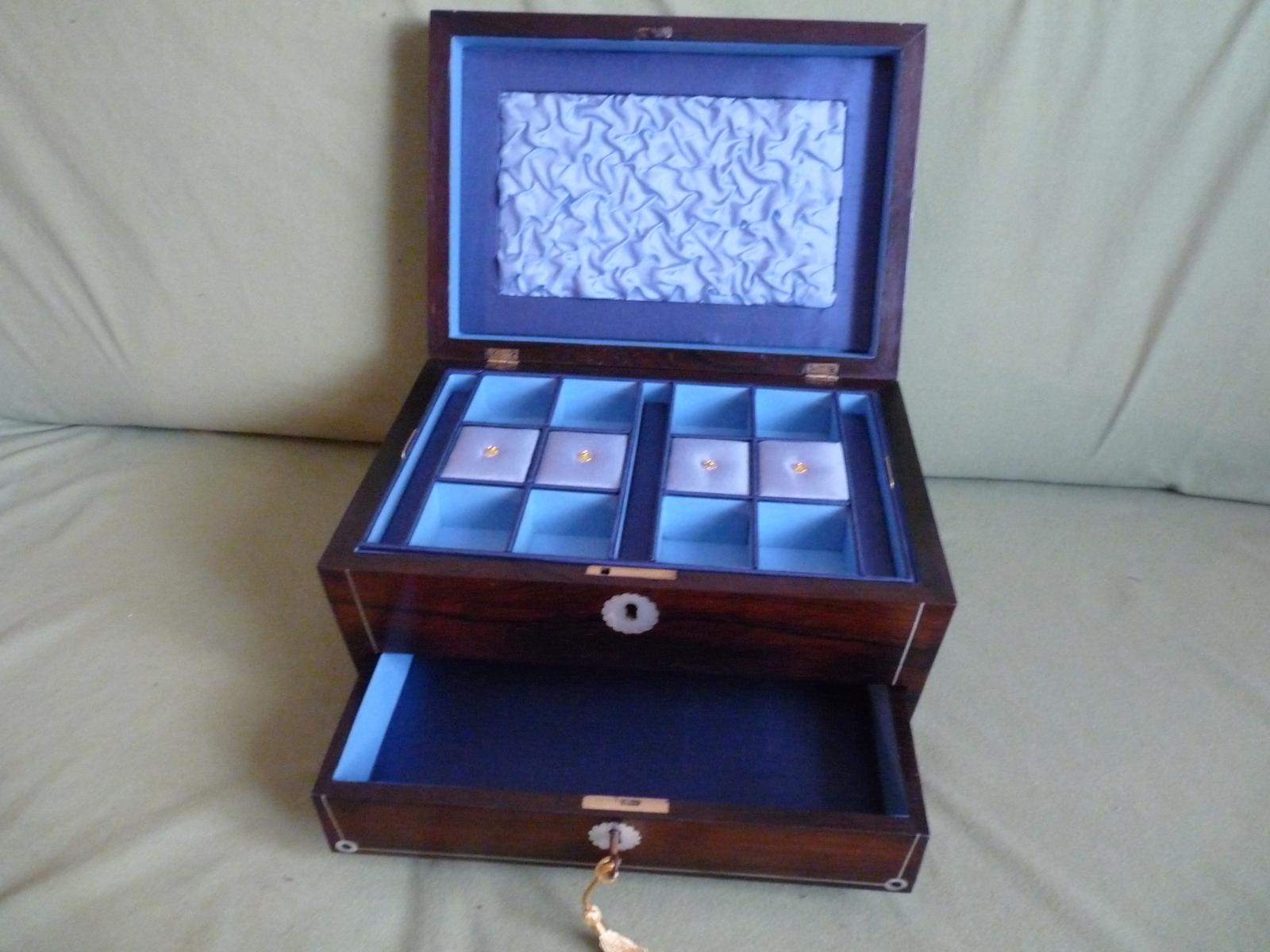 Quality Inlaid Rosewood Jewellery Box. Drawer + Tray