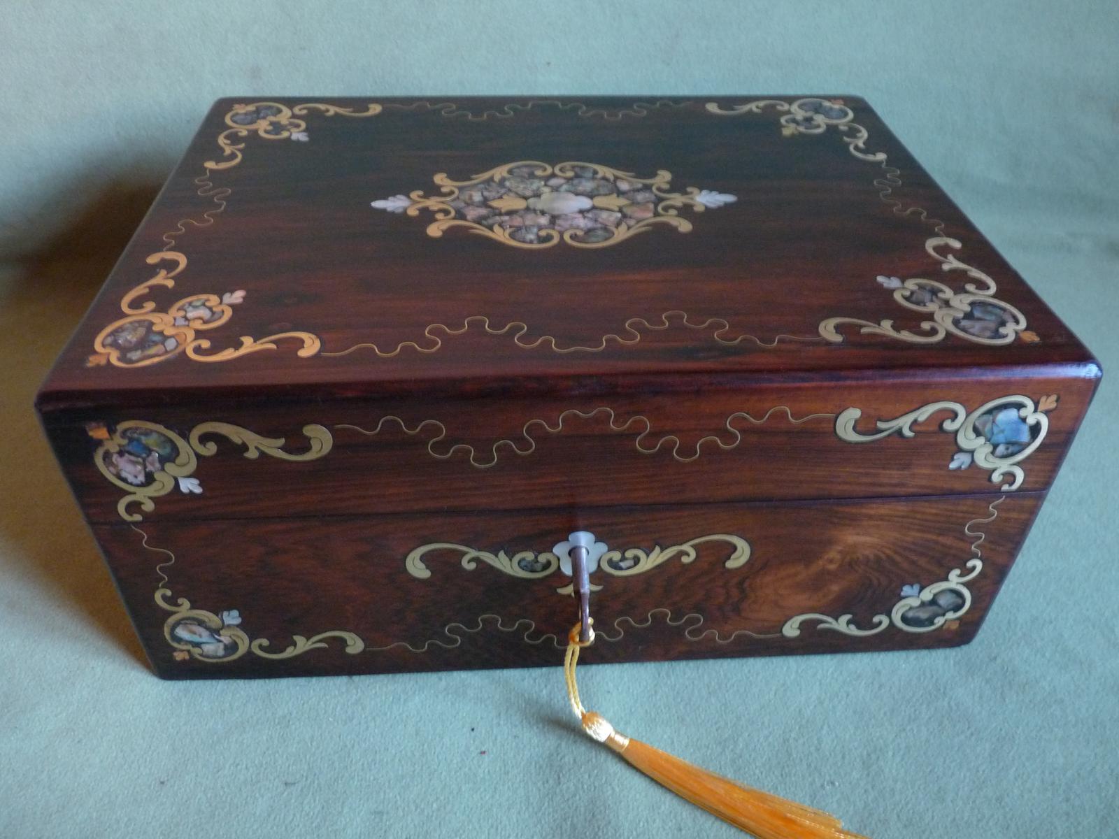 Quality Inlaid Rosewood Jewellery Box - Plush Interior c.1850