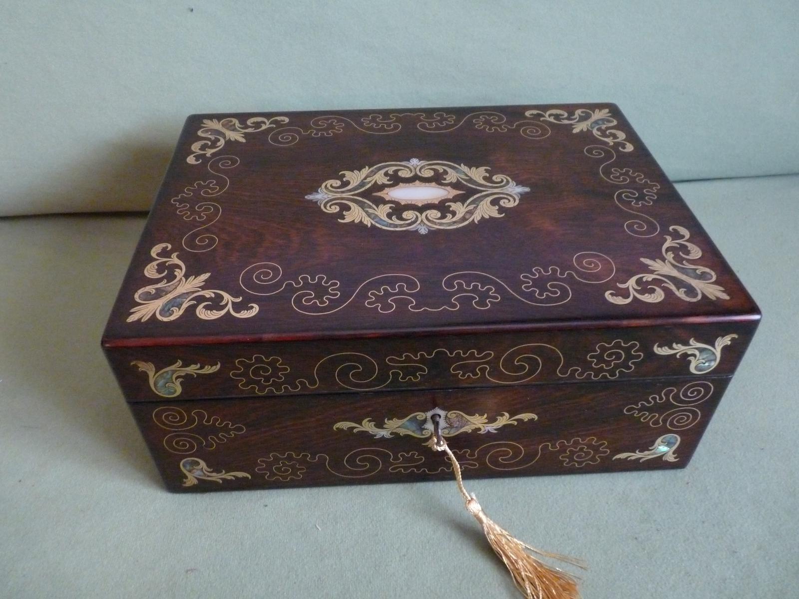 Quality Inlaid Rosewood Jewellery Box + Tray c.1865