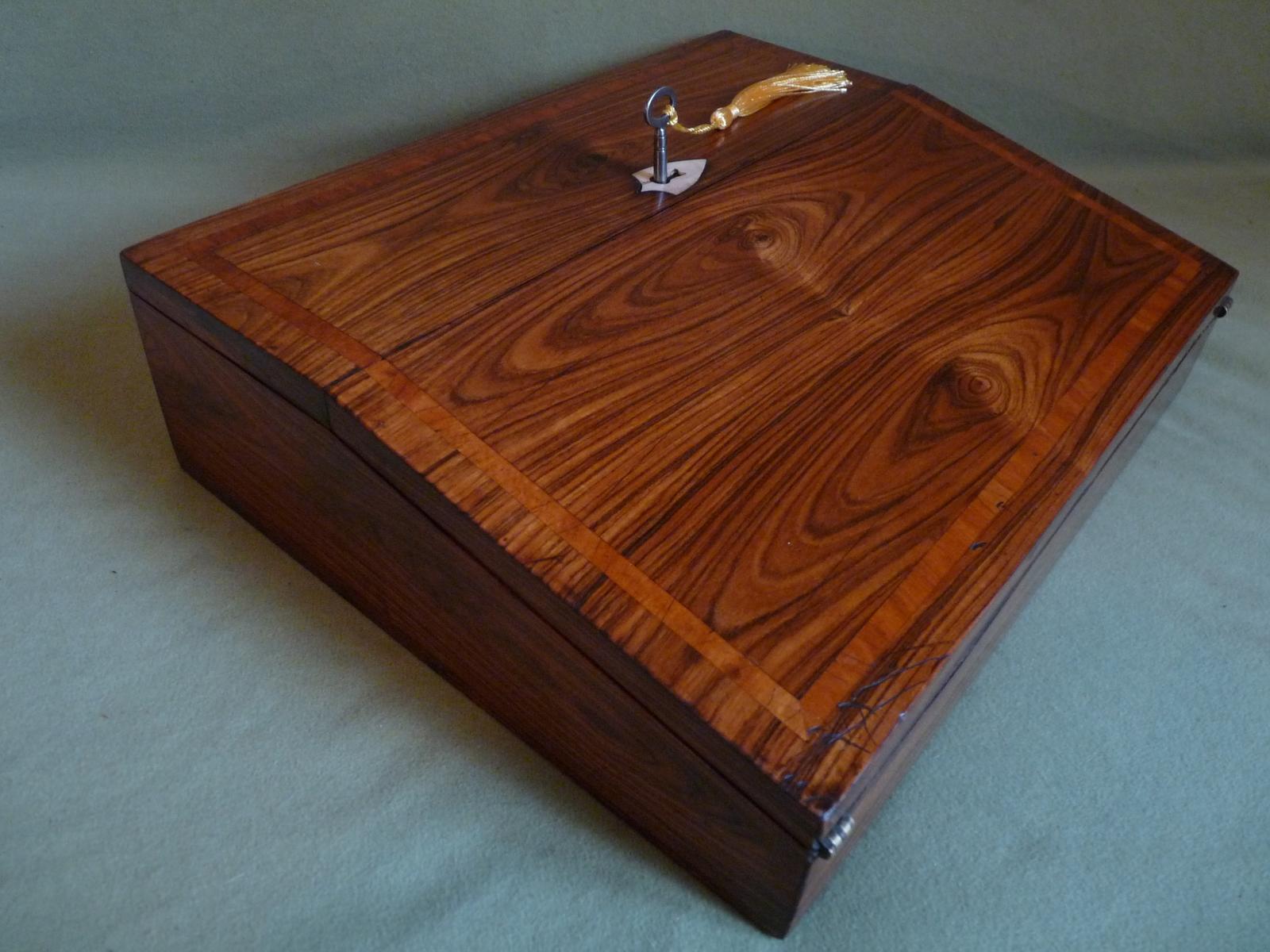 Quality Kingwood Writing Box - Original Velvet Slope Surface c.1835