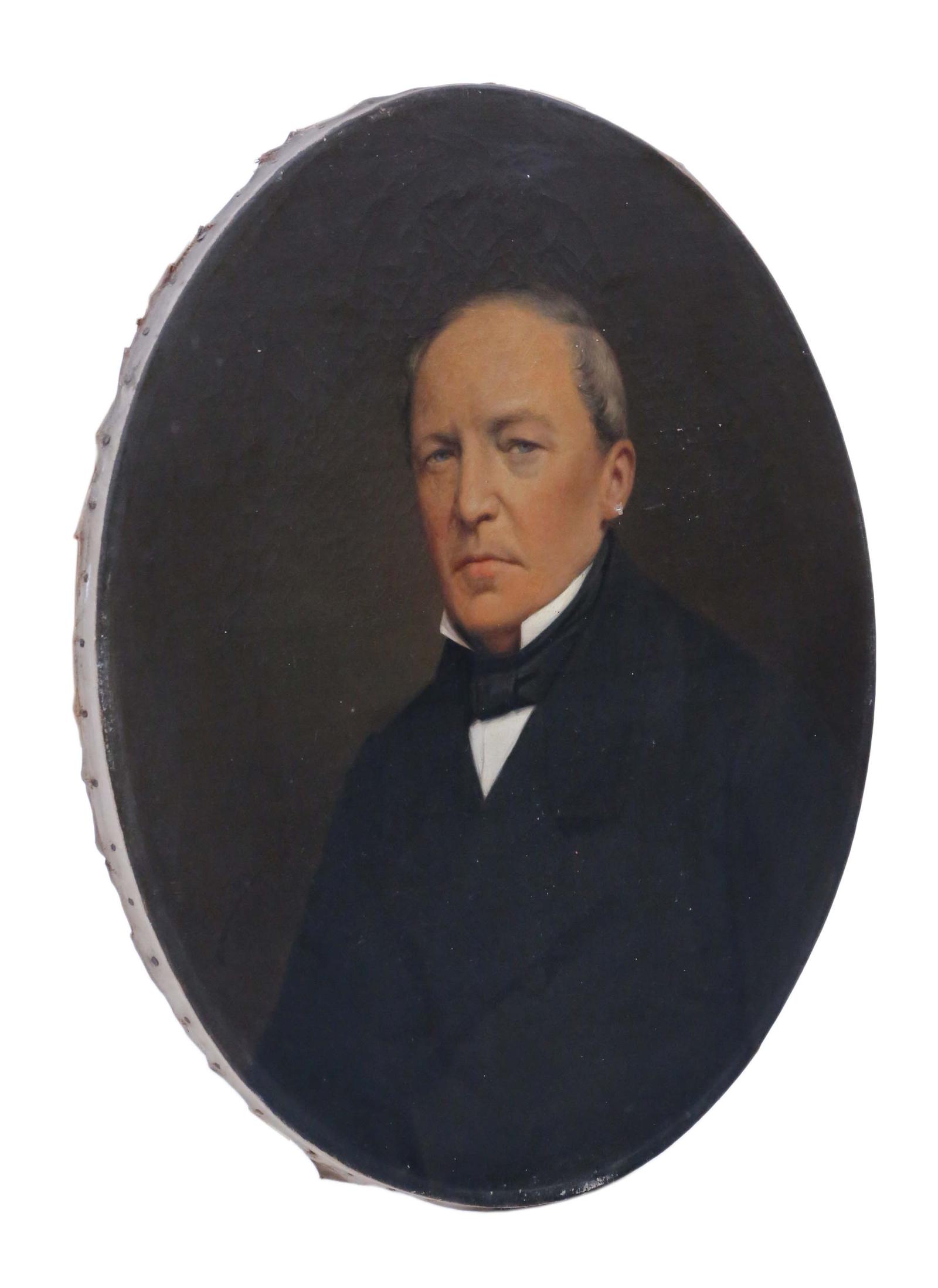 Quality Large Antique Oval Oil on Canvas Portrait Painting of a Gentleman 19th Century (1 of 4)