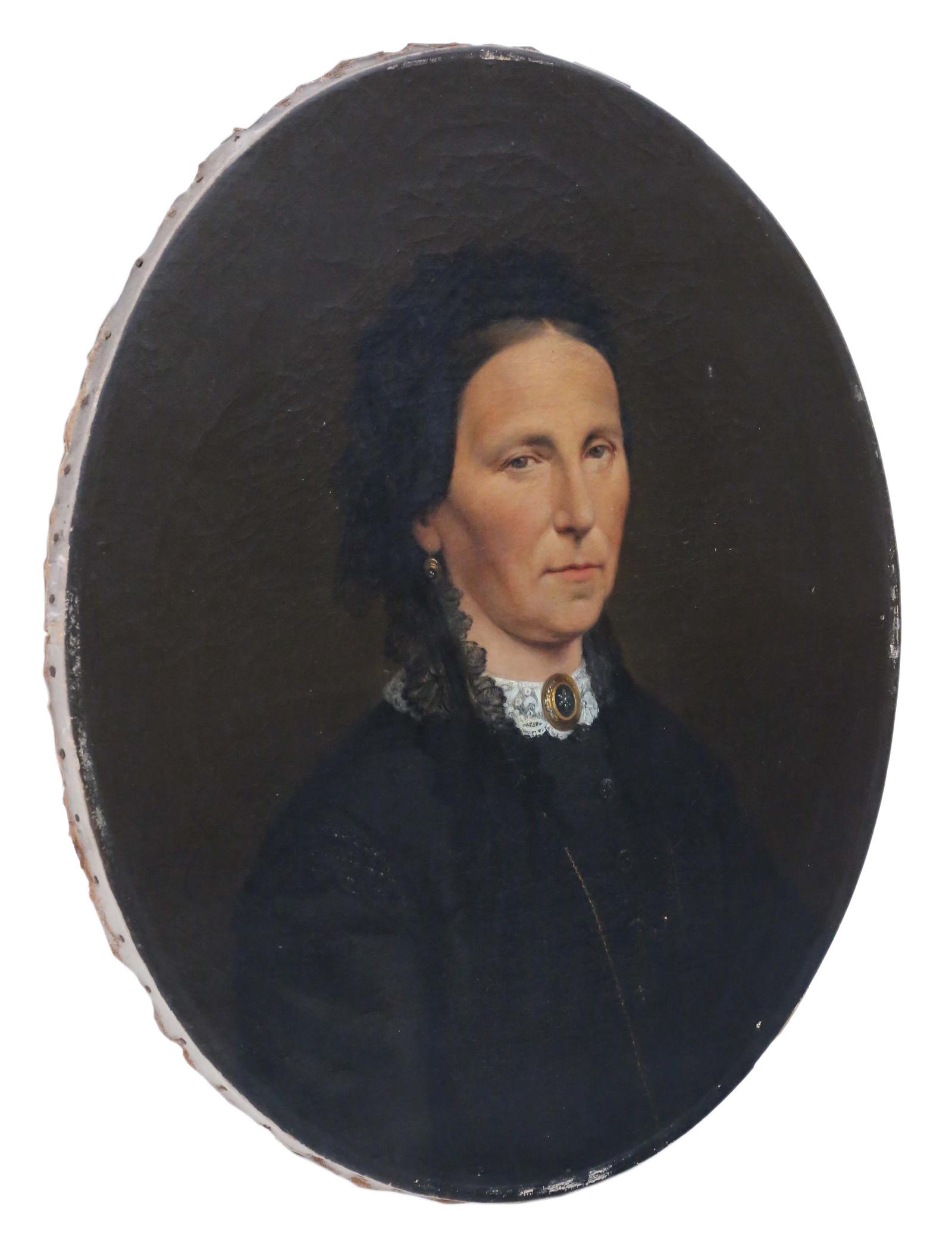 Quality Large Antique Oval Oil on Canvas Portrait Painting of a Lady 19th Century