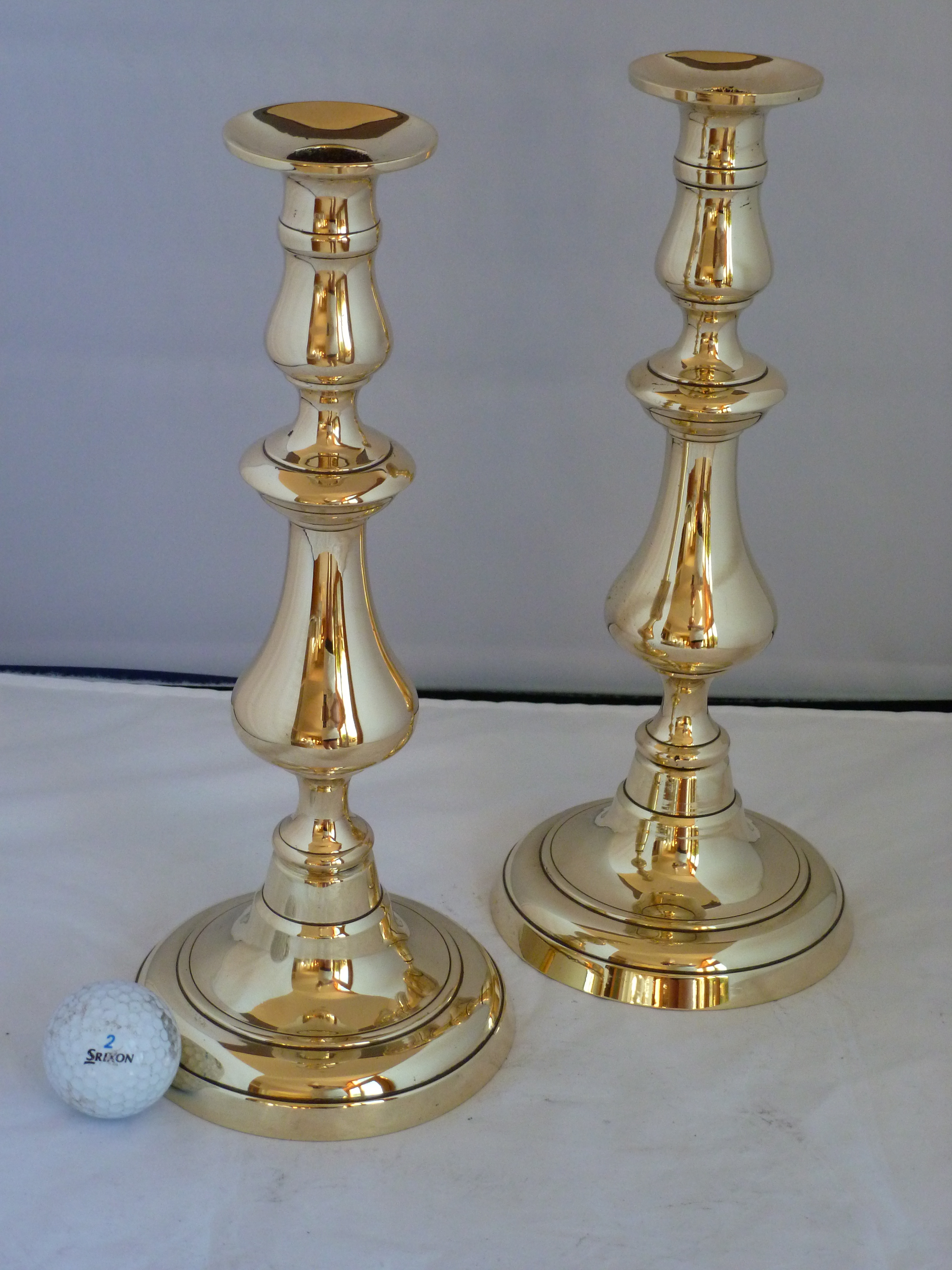 Quality Large Brass Round Base Candlesticks c.1860-1870 (12 Inches)