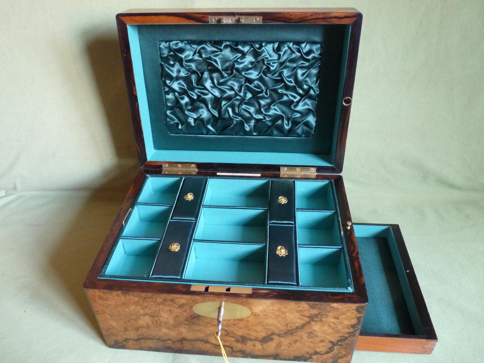 Quality Large Burr Walnut Jewellery Box - Farthing & Thornill c.1870