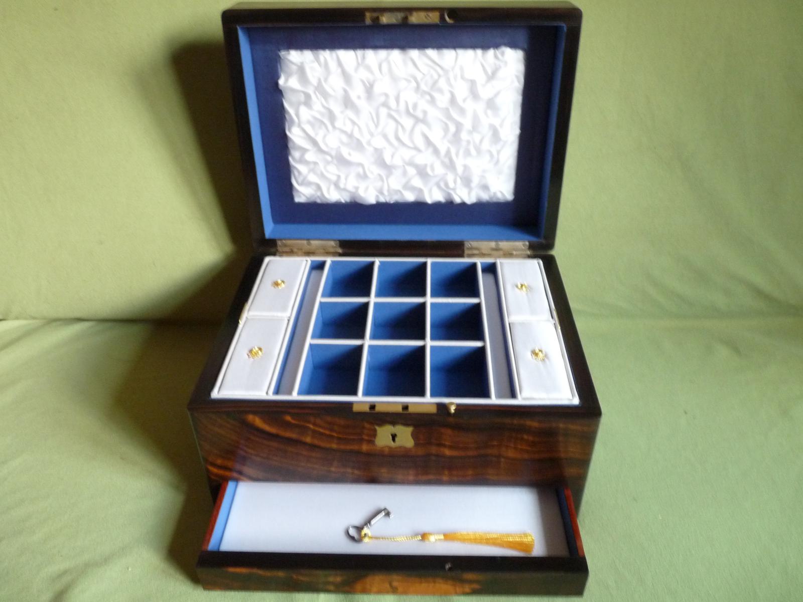 Quality Large Coromandel Jewellery Box. Tray + Drawer.