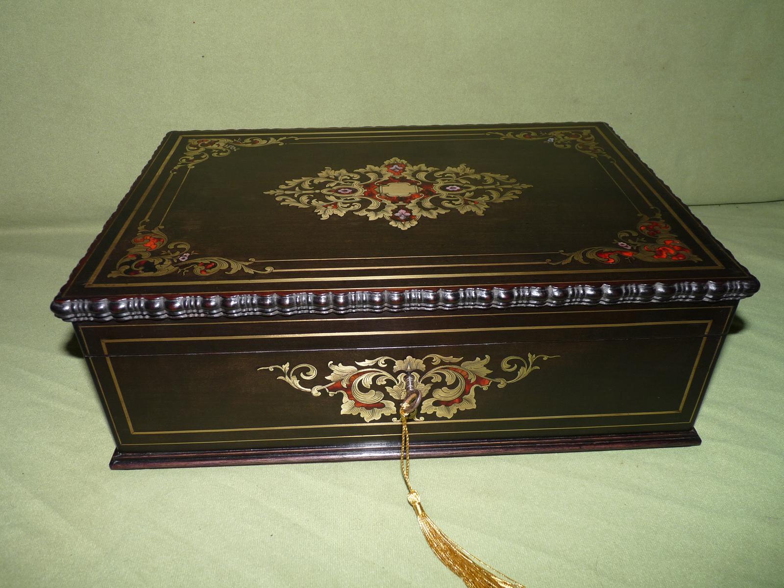 Quality Large French Boulle Inlaid Jewellery Box + Tray c.1870