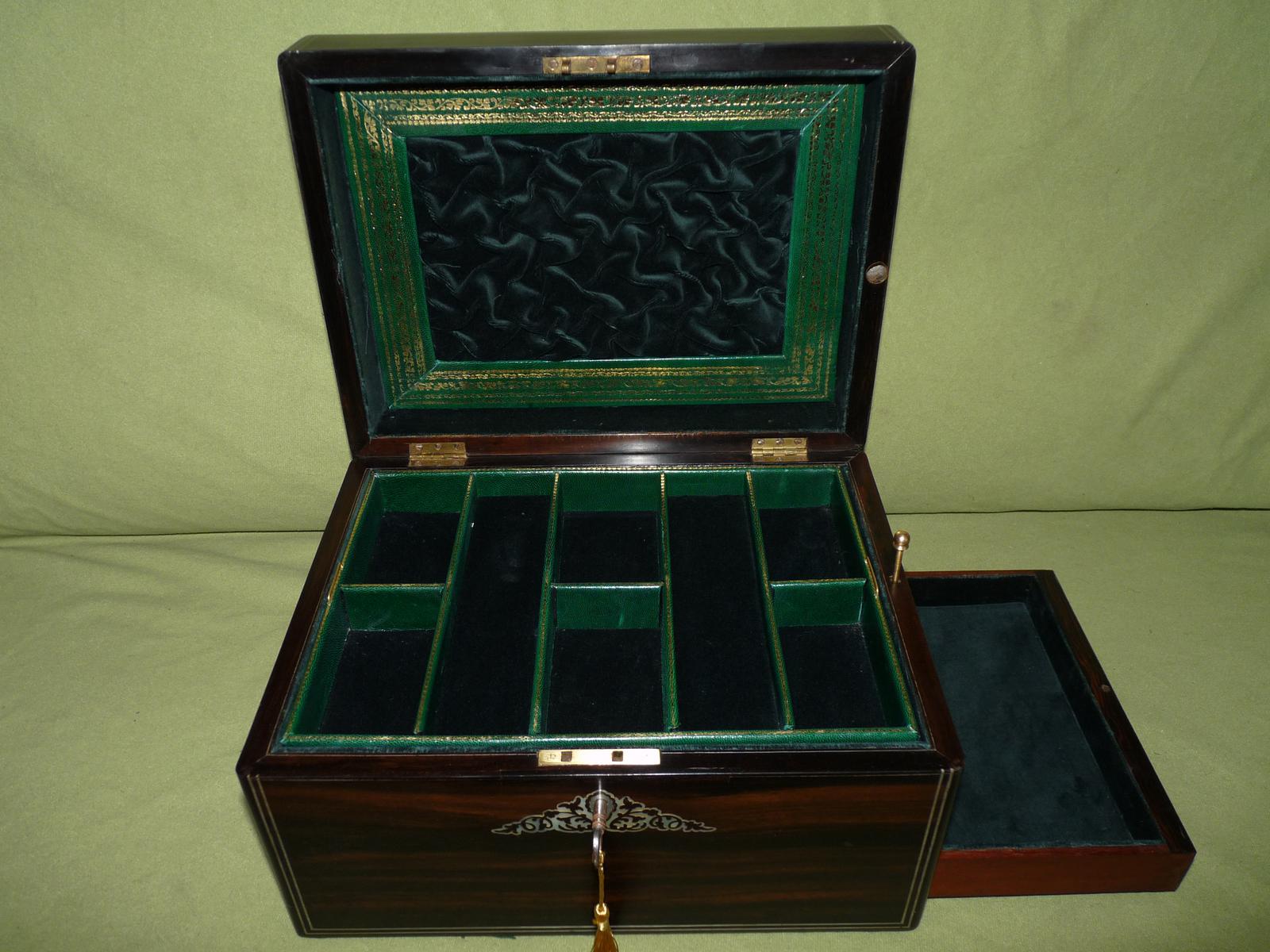 QUALITY Large Inlaid Rosewood Jewellery Box. c1860