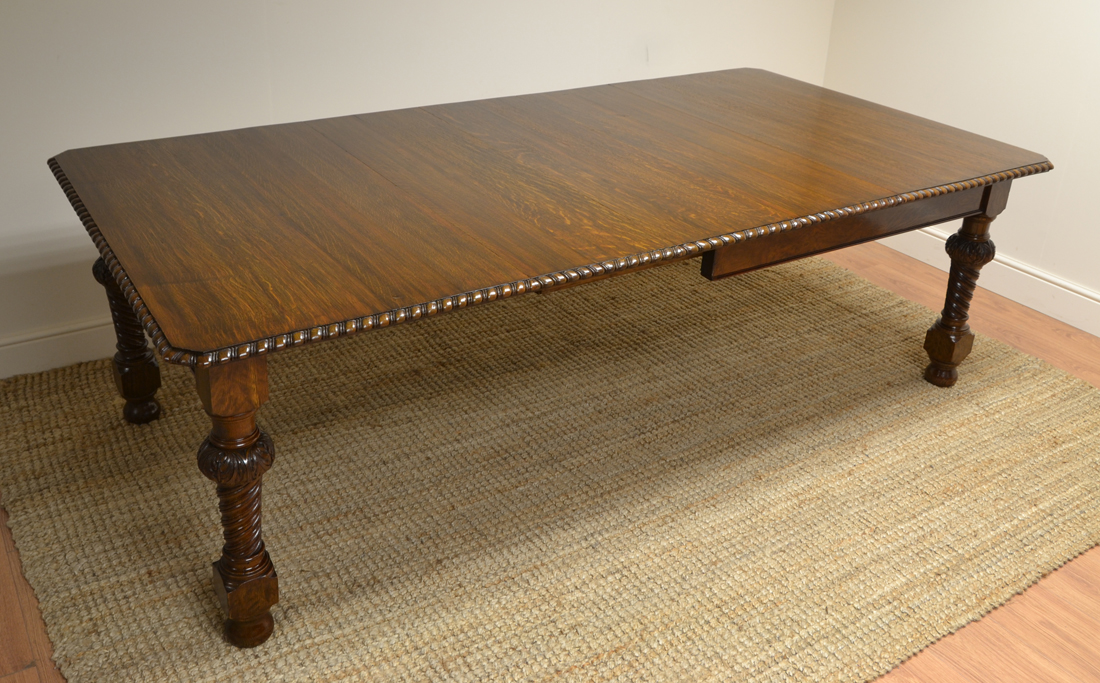 Quality Large Victorian Solid Oak Extending Antique Dining Table