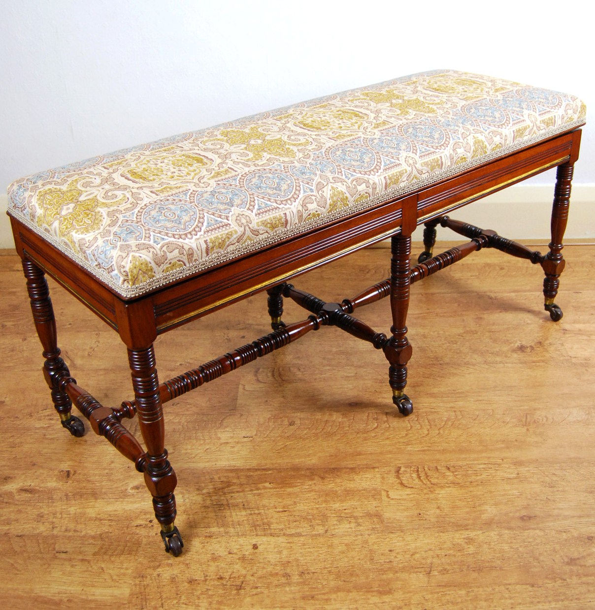 Quality Late Victorian Mahogany Parcel Gilt Duet Piano Stool