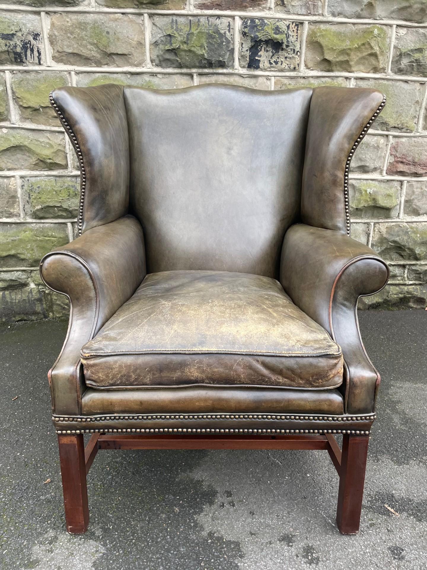 Quality Leather Upholstered Wing Armchair