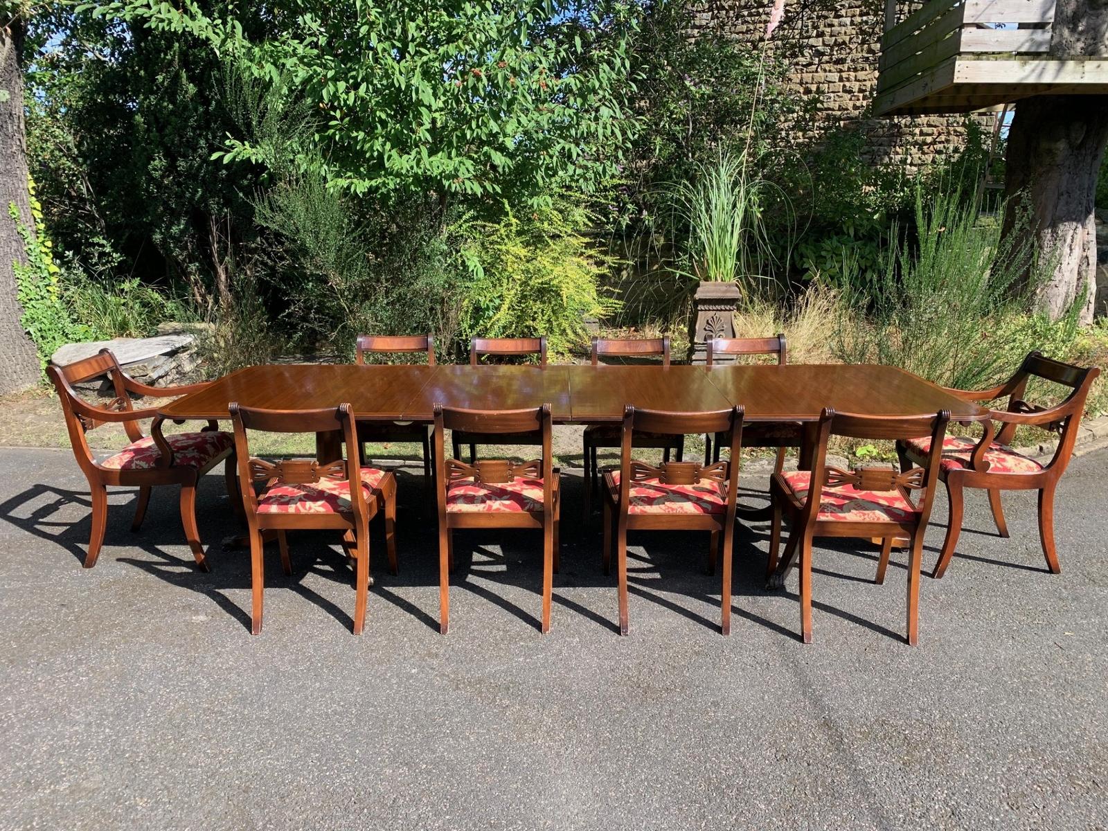 Quality Mahogany 10ft Twin Pillar Extending Dining Table & 10 Chairs